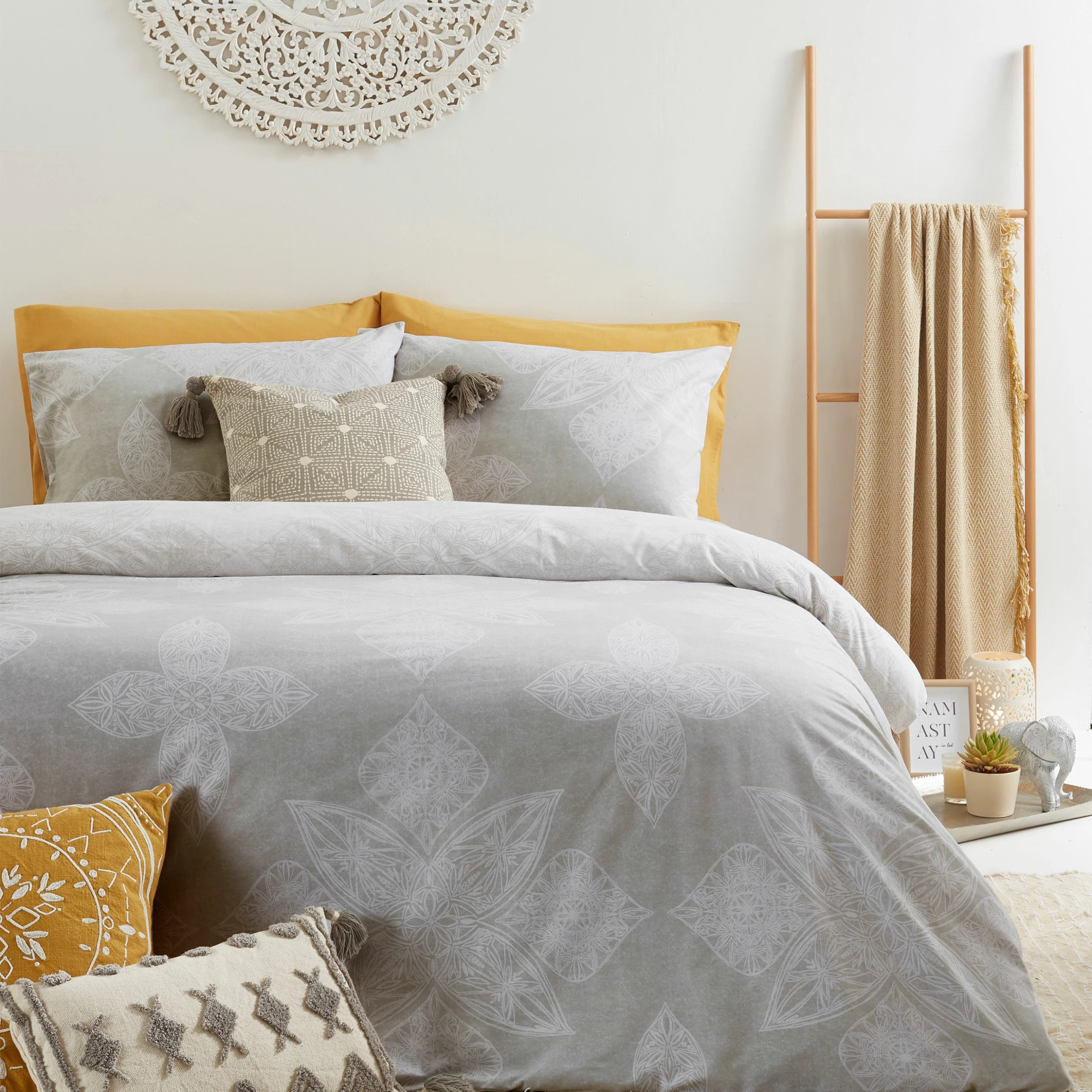 Bring the Boho vibe to your bedroom with this modern and fresh reversible design featuring mandala prints. Made using crisp polycotton making this duvet soft and hard-wearing. Includes 1 x pillowcase measuring 50 x 75cm.