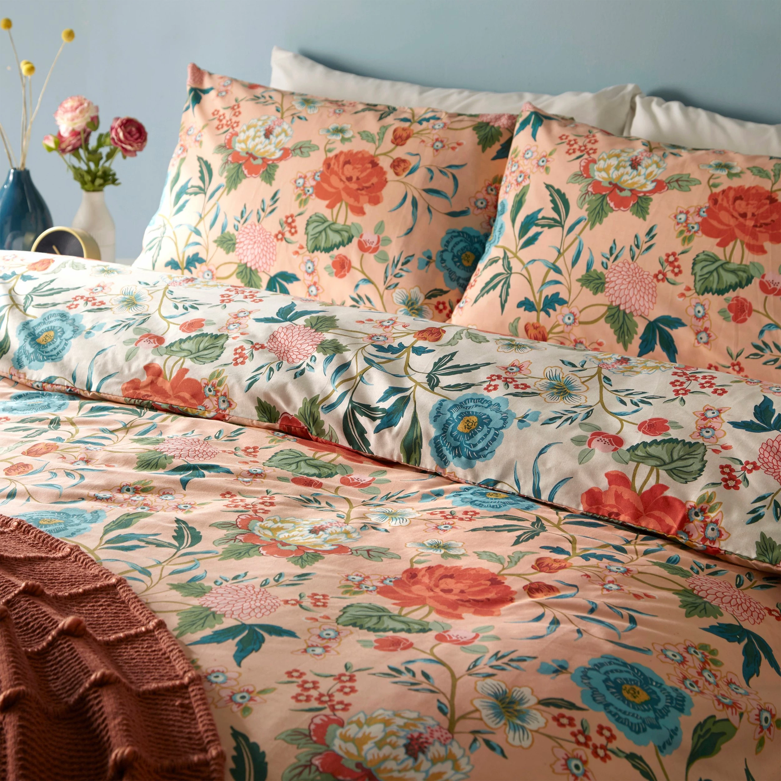 Add instant happiness to your bedroom with the floral Azalea bedding and pillow cases, bursting with bright blooms. Featuring a fully reversible design, so you get two looks in one, perfect for switching when you fancy a quick transformation!