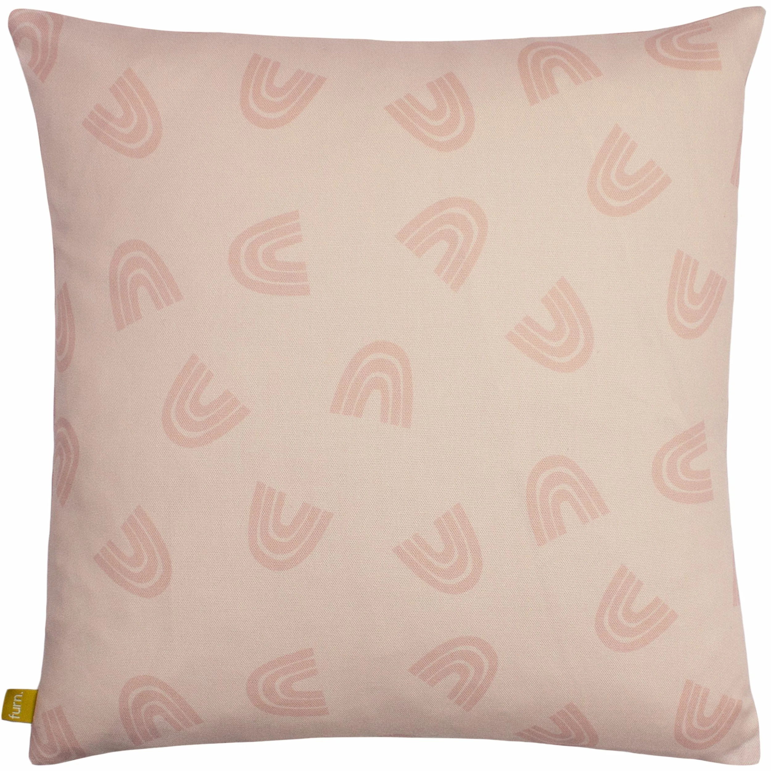 Add a pop of visual texture to your modern interior with this abstract rainbow symbol design. Featuring a print in a range of earthy tones, this cushion is perfect to add to any chair or bed to make a statement to your home styling.