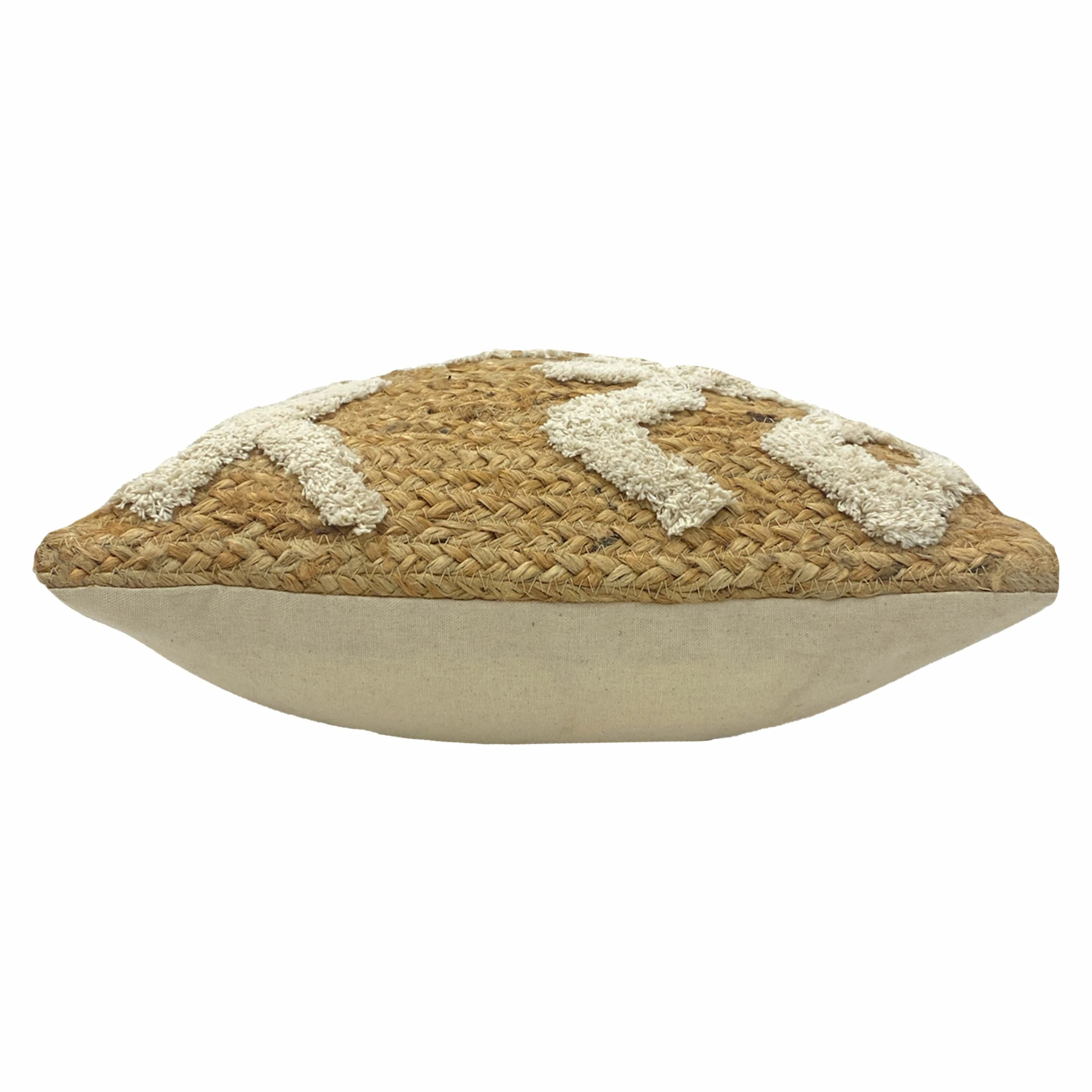 A natural jute cushion featuring contrasting cotton tufting. Complete with standard knife edging and hidden zip closure. Made of 85% Jute/15% Cotton, making this cushion super comfy and durable.