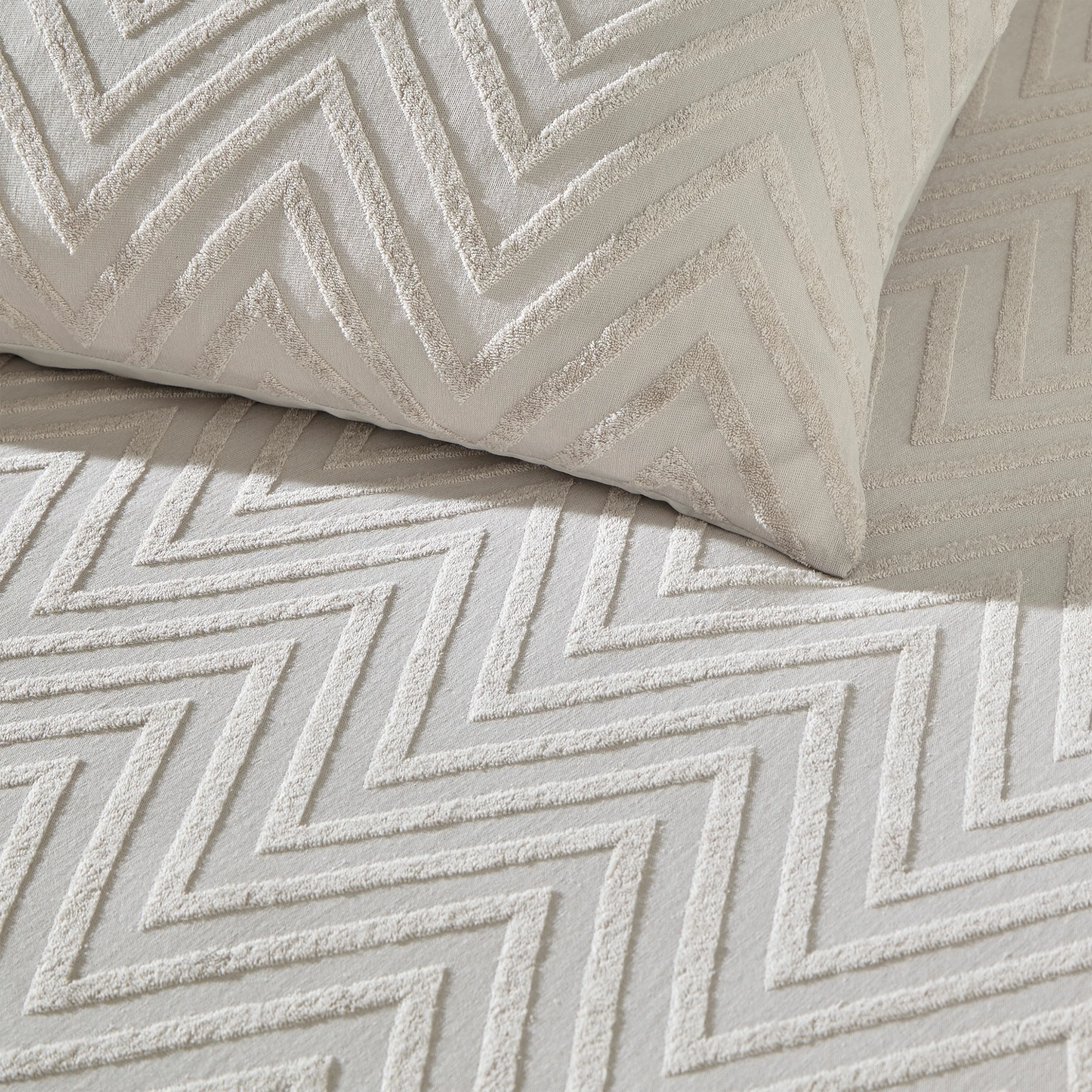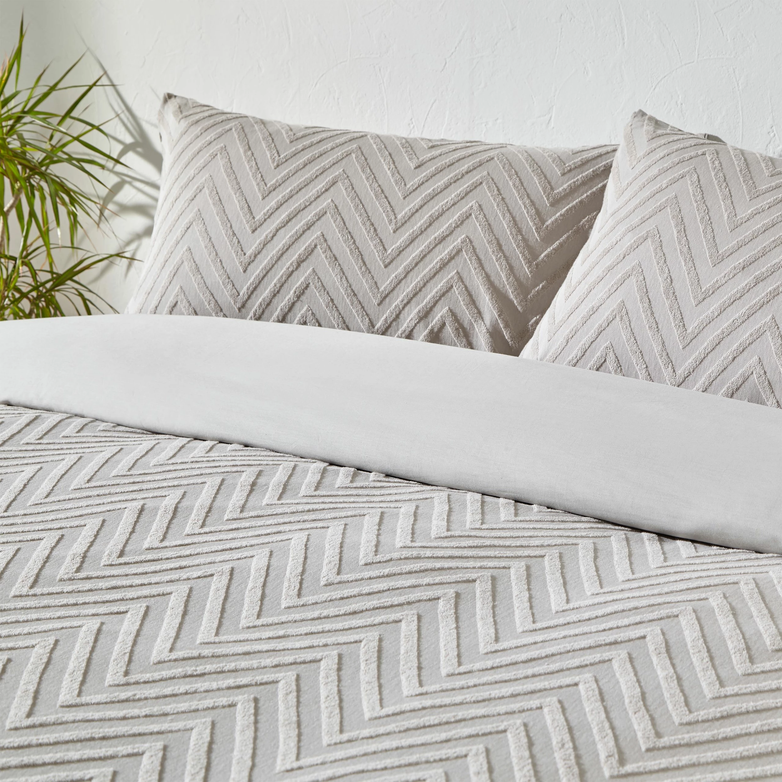 Add texture to your home with the Chevron Tuft duvet cover and pillow case set. Made with 100% cotton and featuring an angular tufting detail, our chevron bedding will add a cosy, textural look to your bedroom. With a comfortable, breathable cotton percale reverse to help you have a better night’s sleep, this bedding feels as good as it looks.