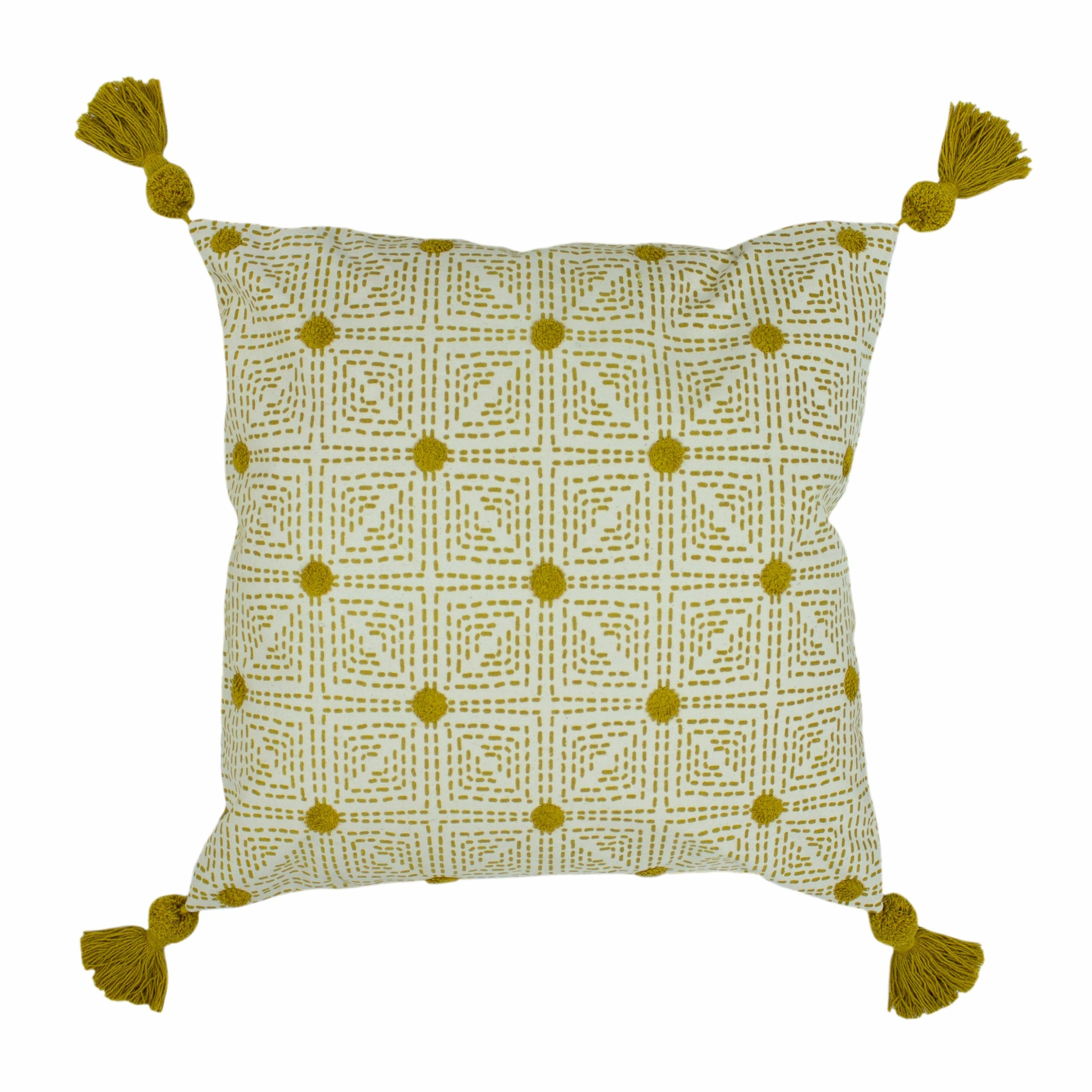 Add some texture and modern style to the best spot in the house with this tufted cotton cushion. In warm-toned colours, this cushion has a fluffy tufted polka dot design arranged in a diamond and dot geometric pattern. Finished with a tassel at each corner, it’s a must for every season.