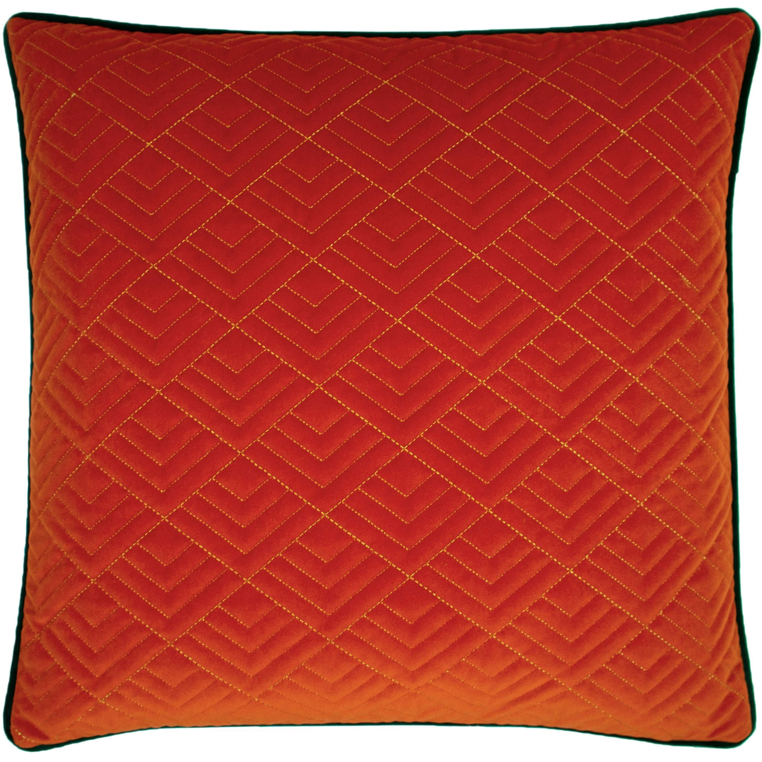Add a pop of colour to your interior with this luxurious and comforting cushion. The geometric, art deco inspired design is stitched with a gold trim and is complete with contrast-coloured piping. The embroidered design adds a textured appearance which allows the richer jewel toned hues to instantly shine and make a statement.