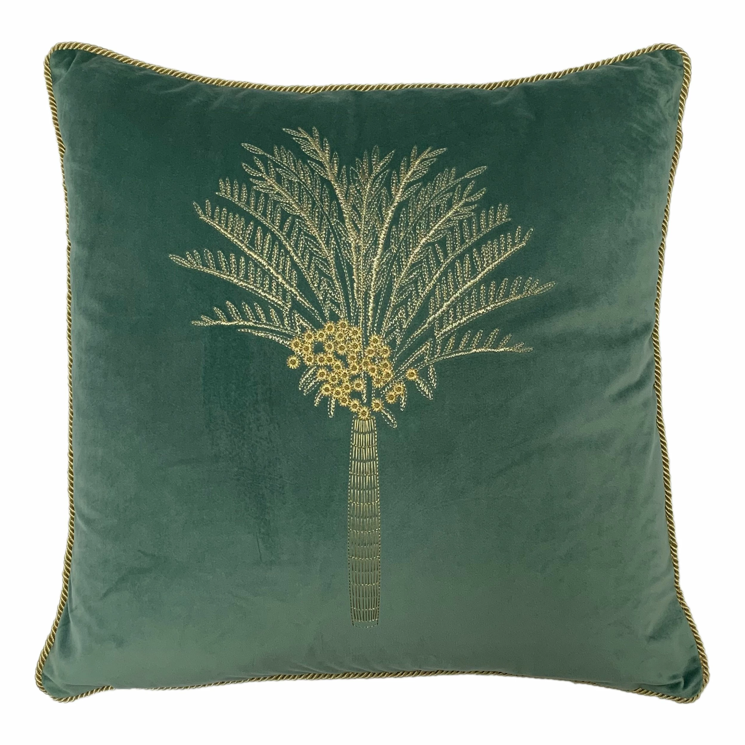 Add a touch of opulence to your interior with the this soft velvet design. Featuring a golden embroidered palm tree, this cushion will spark the personality into your décor. With twisted gold cord piping and warm spring colours; this cushion will be the perfect assessory for your bed or sofa.