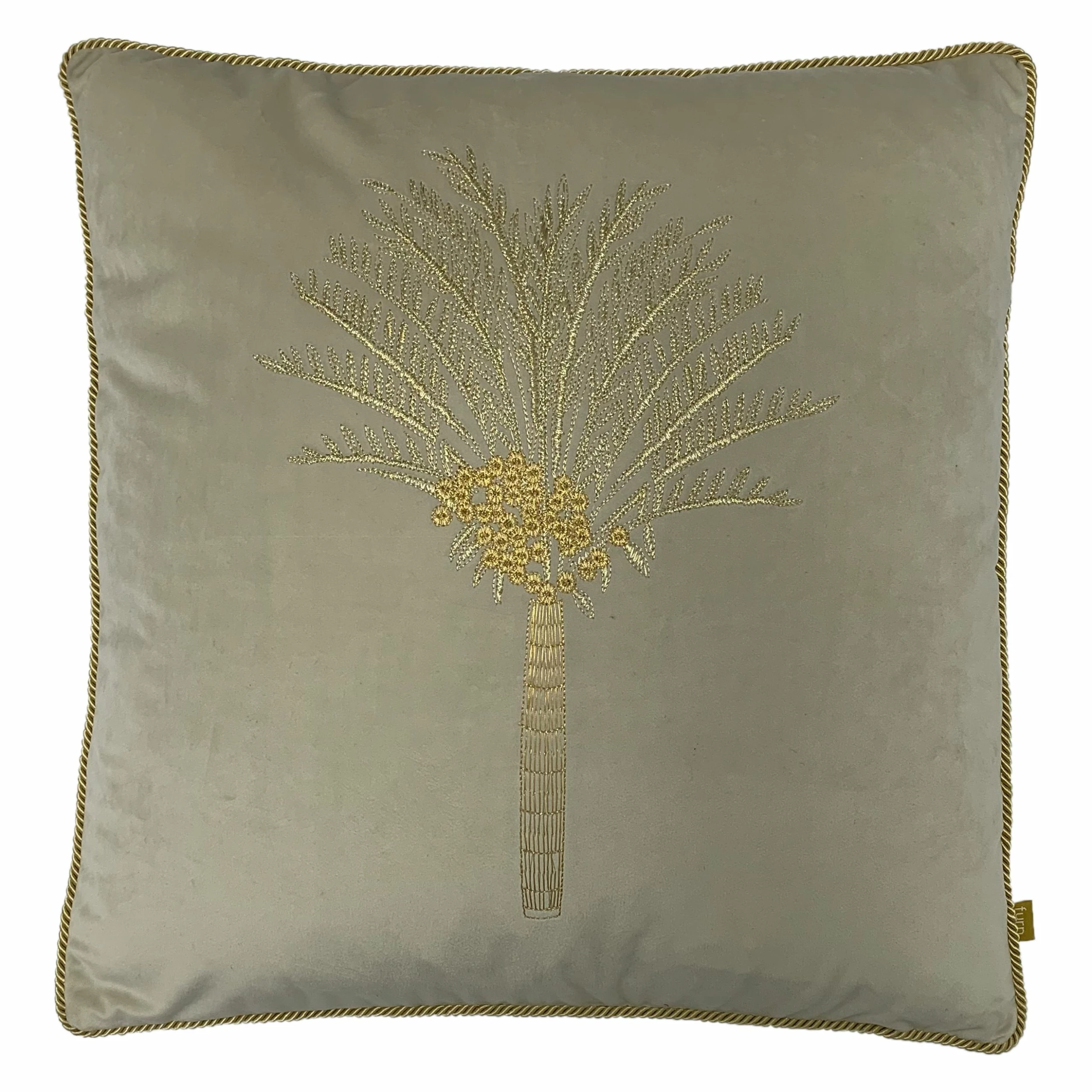 Add a touch of opulence to your interior with the this soft velvet design. Featuring a golden embroidered palm tree, this cushion will spark the personality into your décor. With twisted gold cord piping and warm spring colours; this cushion will be the perfect assessory for your bed or sofa.