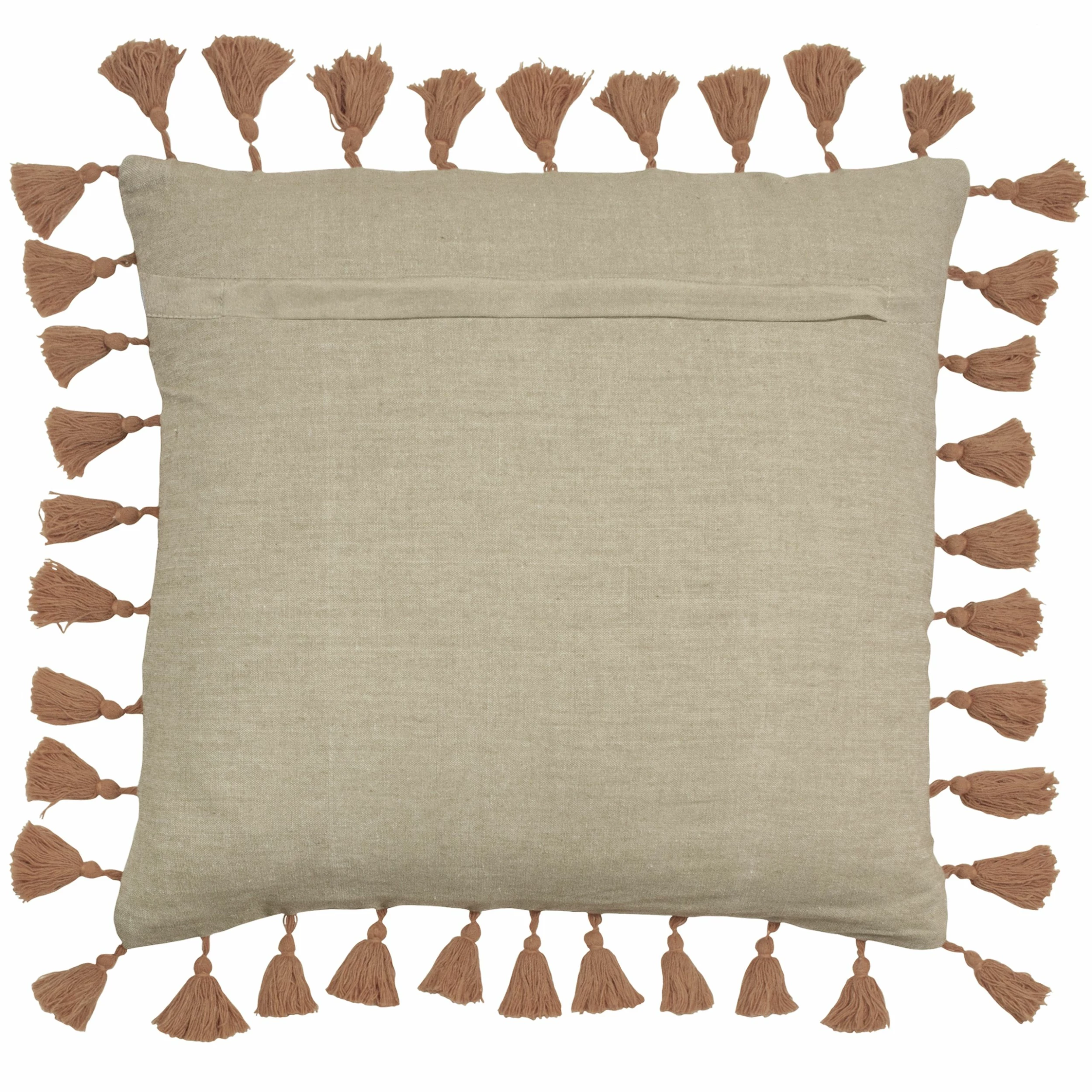 Combine comfort and style with these linen-look cushions that sit on a 100% Cotton Chambray fabric. Whether scattered across a sofa, decorating a chair or bed; This design with compliment many interiors with its natural background and soft coloured contrasting tassel-trimmed edging.