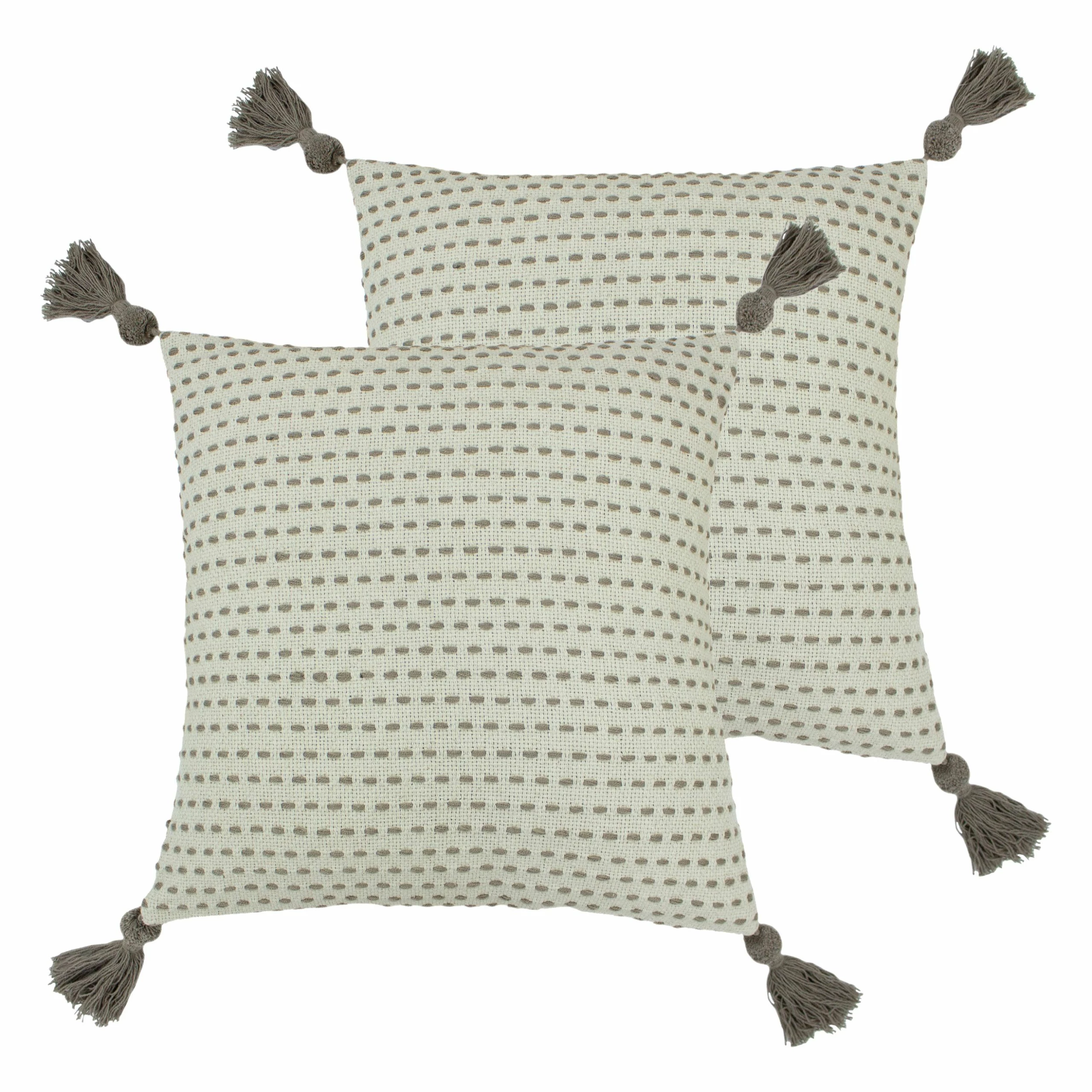 Add some texture and modern style to the best spot in the house with this embroidered cushion. In warm-toned colours, this cushion has a stitched striped design arranged on a soft linen-look fabric. Finished with a tassel at each corner, it’s a must for every season.