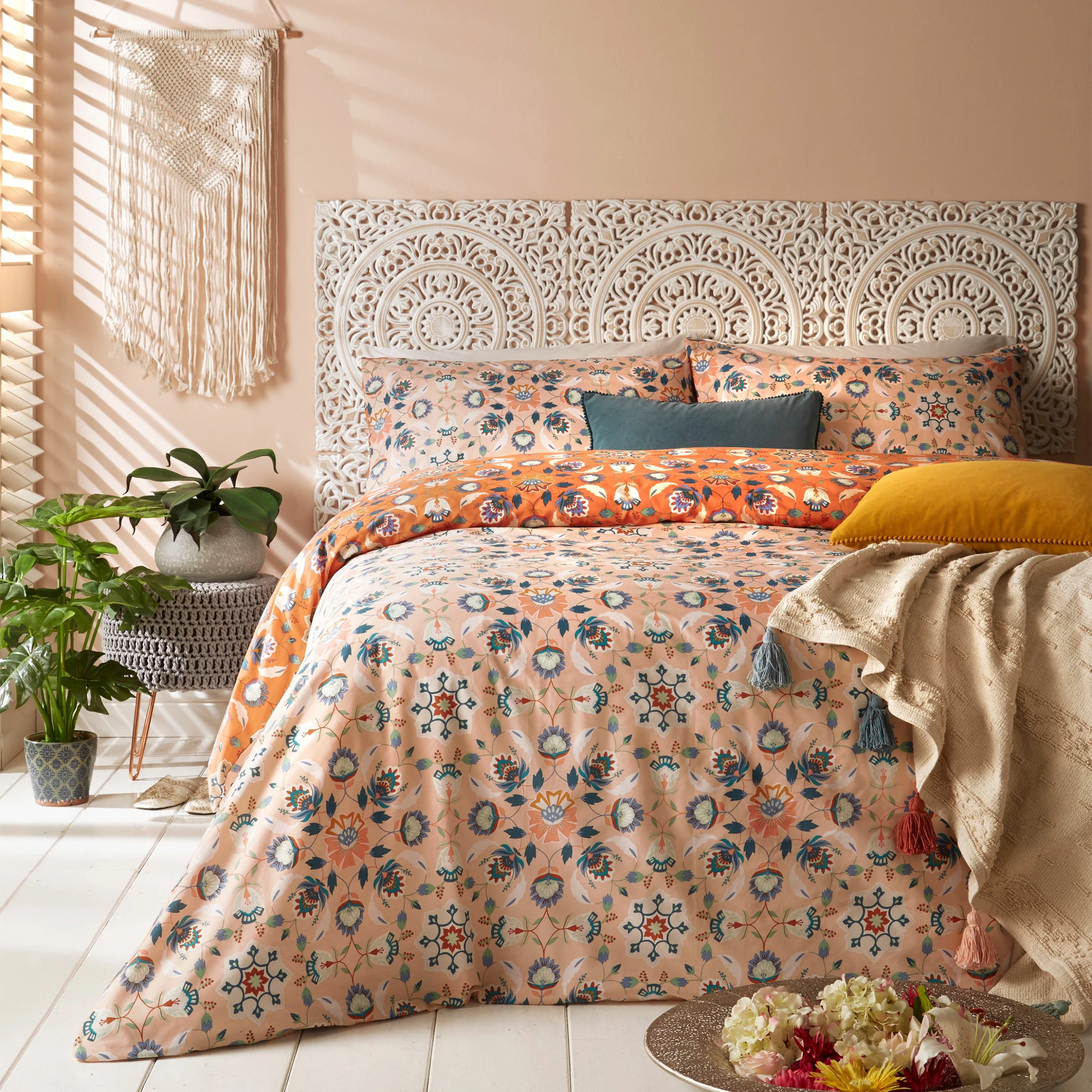 Instantly transform your bedroom with our Folk Flora bedding, inspired by traditional folk art and vibrant foral tones. Featuring a fully reversible design, so you get two looks in one, perfect for switching over to suit your mood or décor.