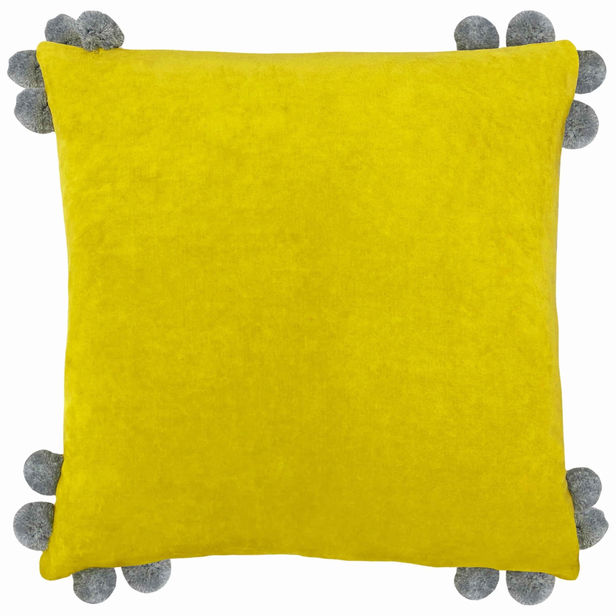 A plain, soft cushion design featuring fun, bold cotton pom poms, available in a range of colour ways. Complete with cotton pom poms , standard knife edging and hidden zip closure. Made of 100% Cotton, making this cushion super comfy and durable.