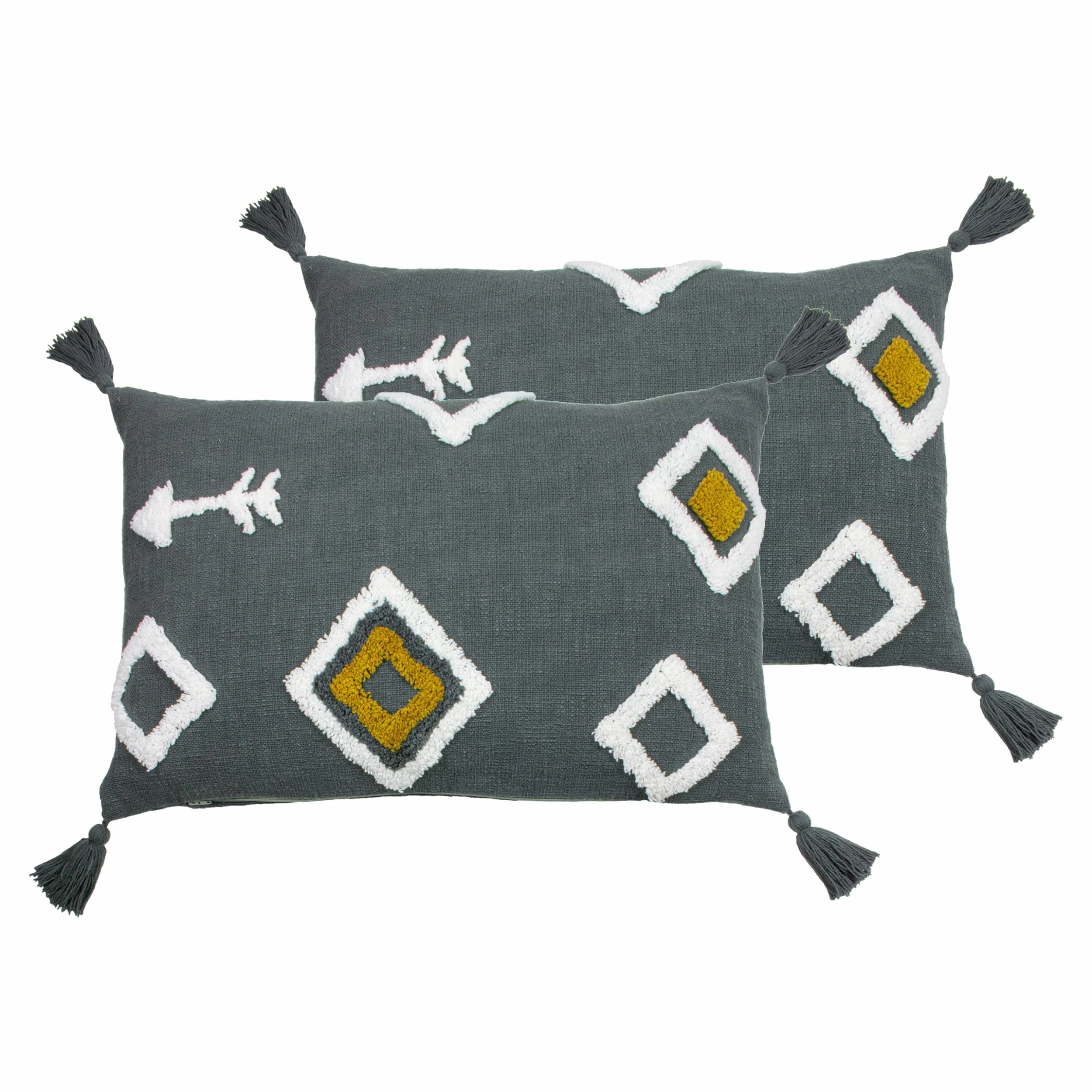 Add global styles and texture to your bedroom with this Aztec inspired cushion. With tufted features on a cotton slub and corner tassel edging, this design is perfect for bohemian and minimalist styling at home.