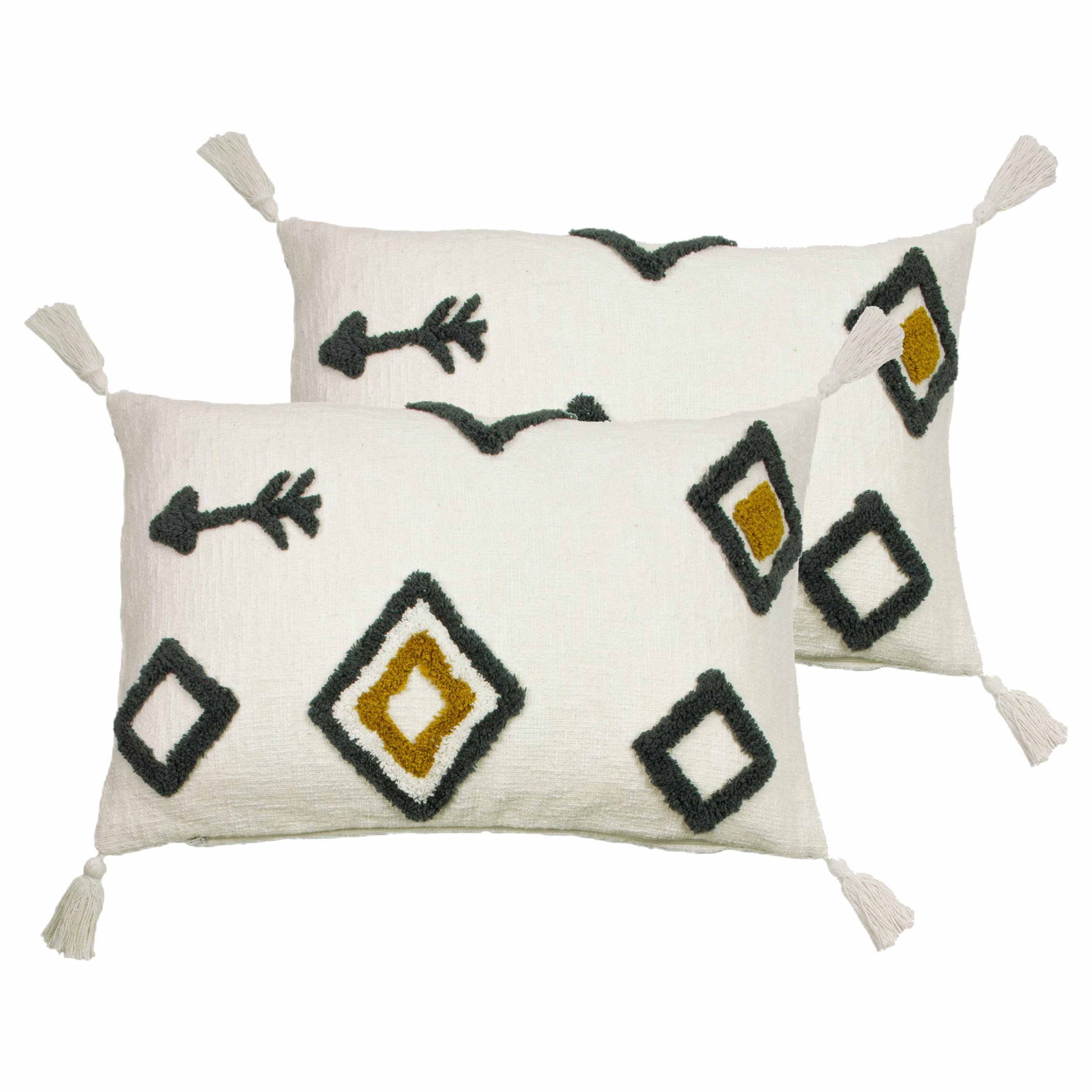 Add global styles and texture to your bedroom with this Aztec inspired cushion. With tufted features on a cotton slub and corner tassel edging, this design is perfect for bohemian and minimalist styling at home.