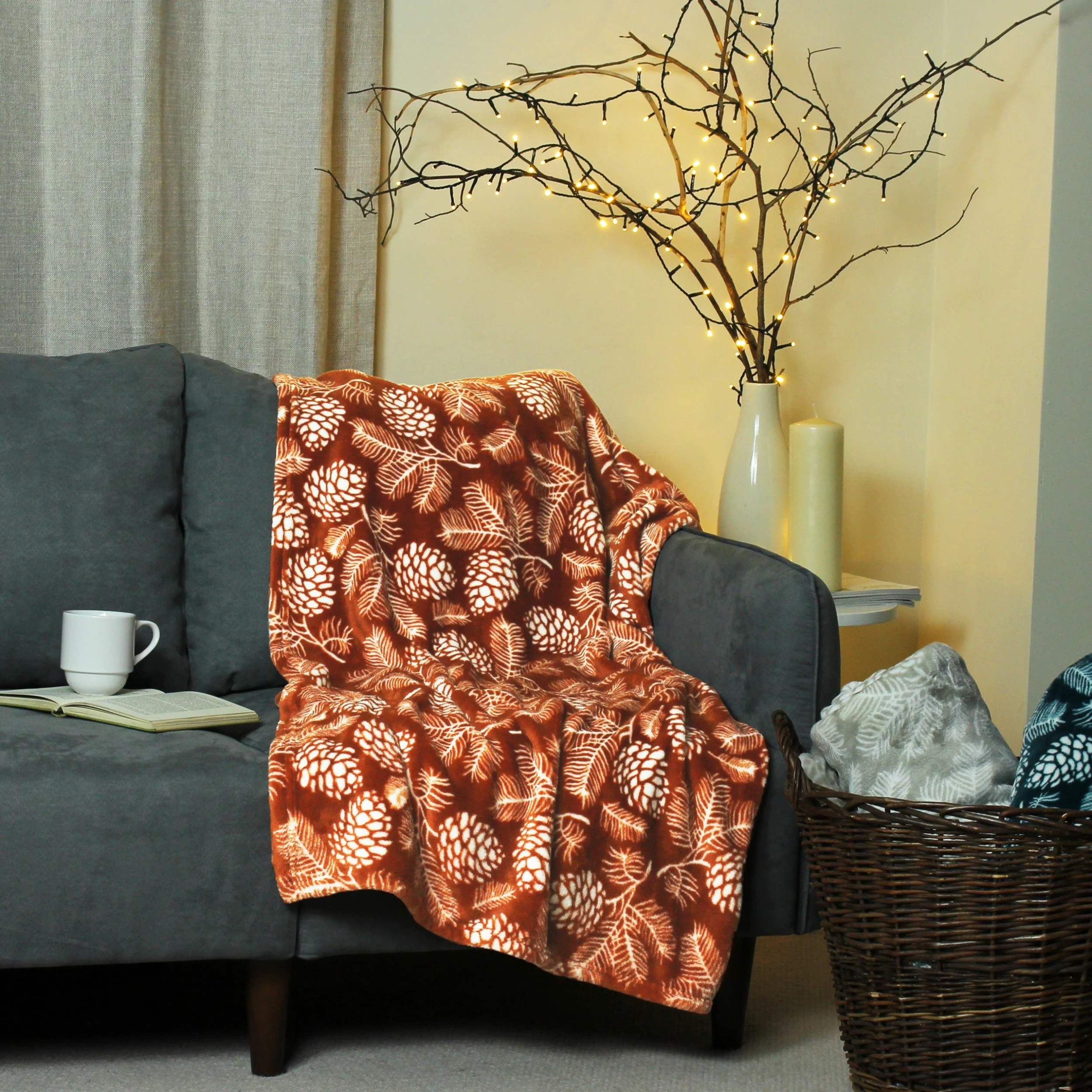 Give your home a autumnal makeover with the Irwin throw. Featuring pinecones surrounded by woodland foliage. Created with heavyweight fleece fabric this throw is perfect for wrapping yourself up in during colder months and is wonderfully soft.