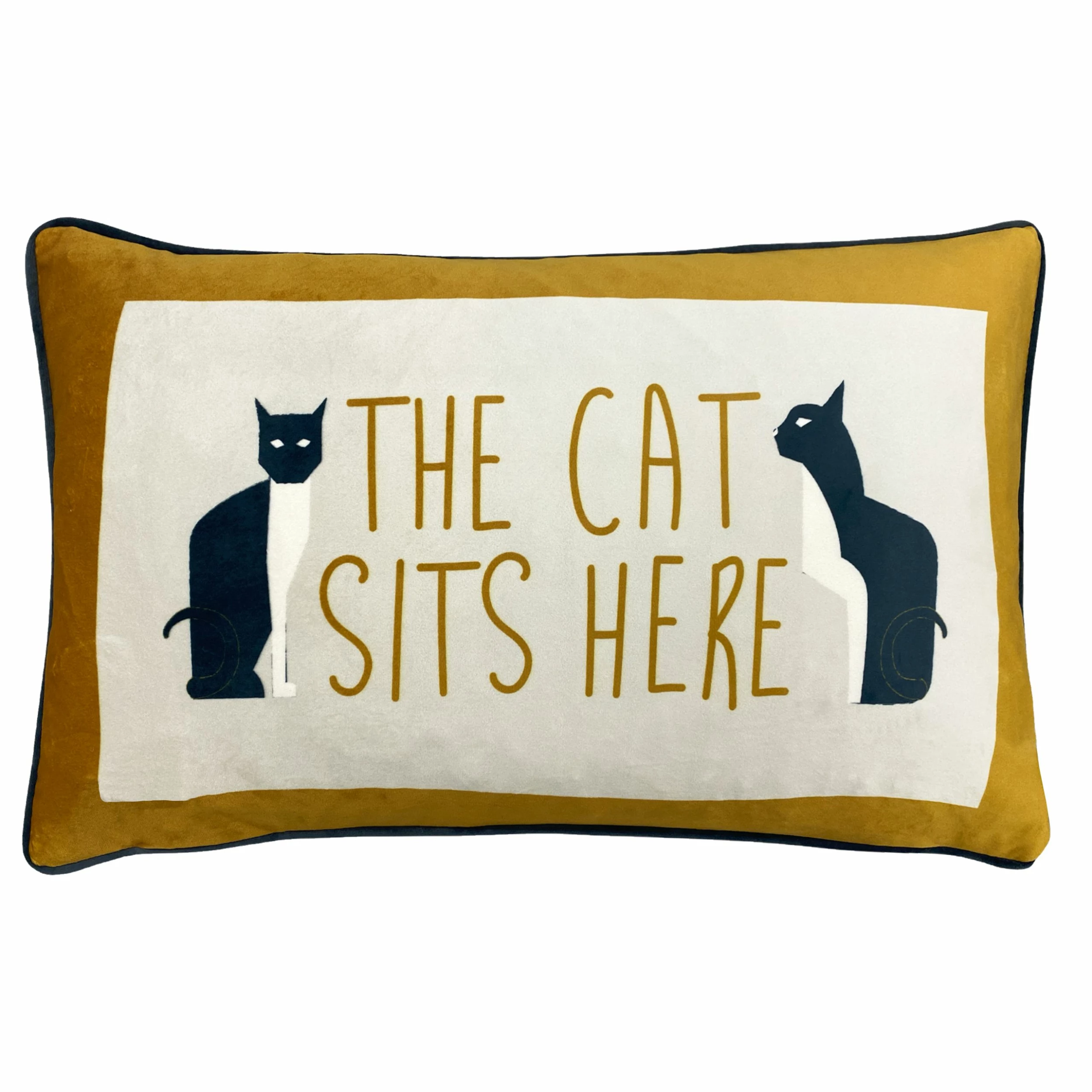 The purrfect cushion for all cat lovers. The adorable cats posing, besides ‘The Cat Sits Here’ slogan makes it a playful design that will add enjoyment to any room. Complete with a soft velvet reverse and piped edging, this cushion is a lovely finishing touch to your home. Coordinate with the Kitta Duvet Cover Set.
