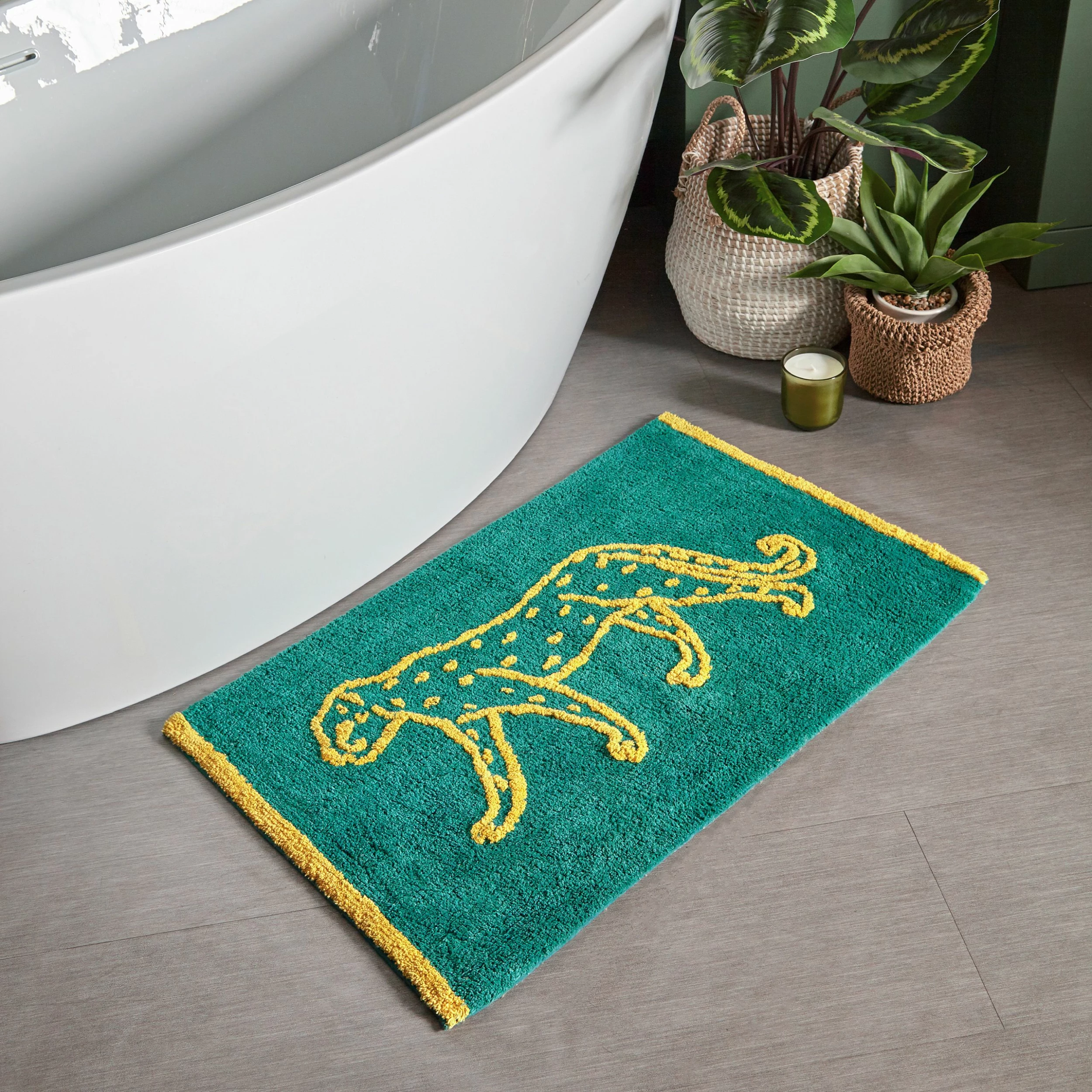 Featuring a minimalistic design of the majestic leopard, finished with a bold contrasting side trim. Made from 100% Cotton, making this bath mat incredibly soft under foot. This bath mat has an anti-slip quality, keeping it securely in place on your bathroom floor. The 1800 GSM ensures this bath mat is super absorbent preventing post-bath or shower puddles.