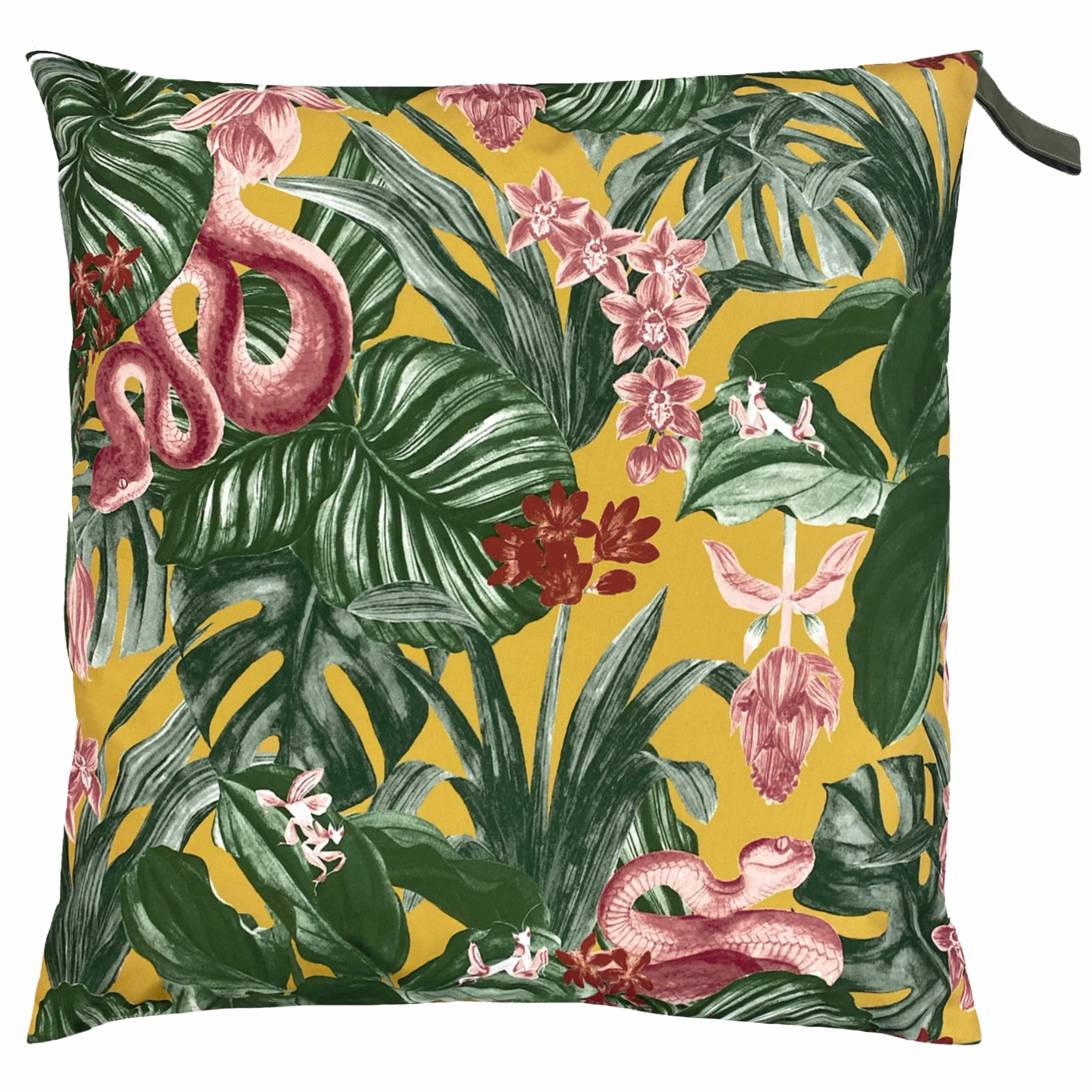 Get lost amongst the tropical floral jungle with the Medinilla outdoor cushion. Delve deep amongst the tropical foliage to discover an exotic array of snakes hiding in their natural habitat. The perfect addition to your garden!