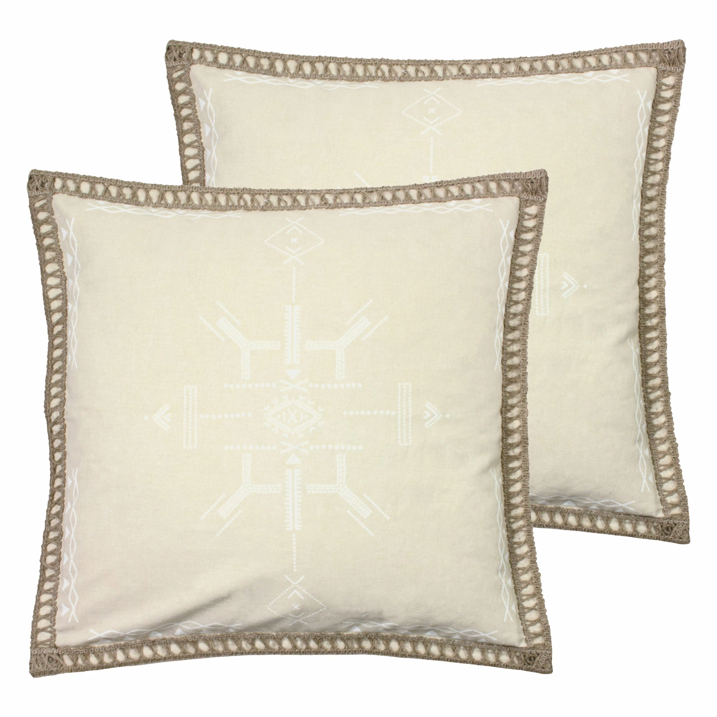 Add global style and texture to your bedroom or living room with a hand drawn aztec inspired cushion. Perfect for bohemian and minimalist styling at home, this design featuring a jute braided trim is the perfect touch to add a visually textural statement to your interior.