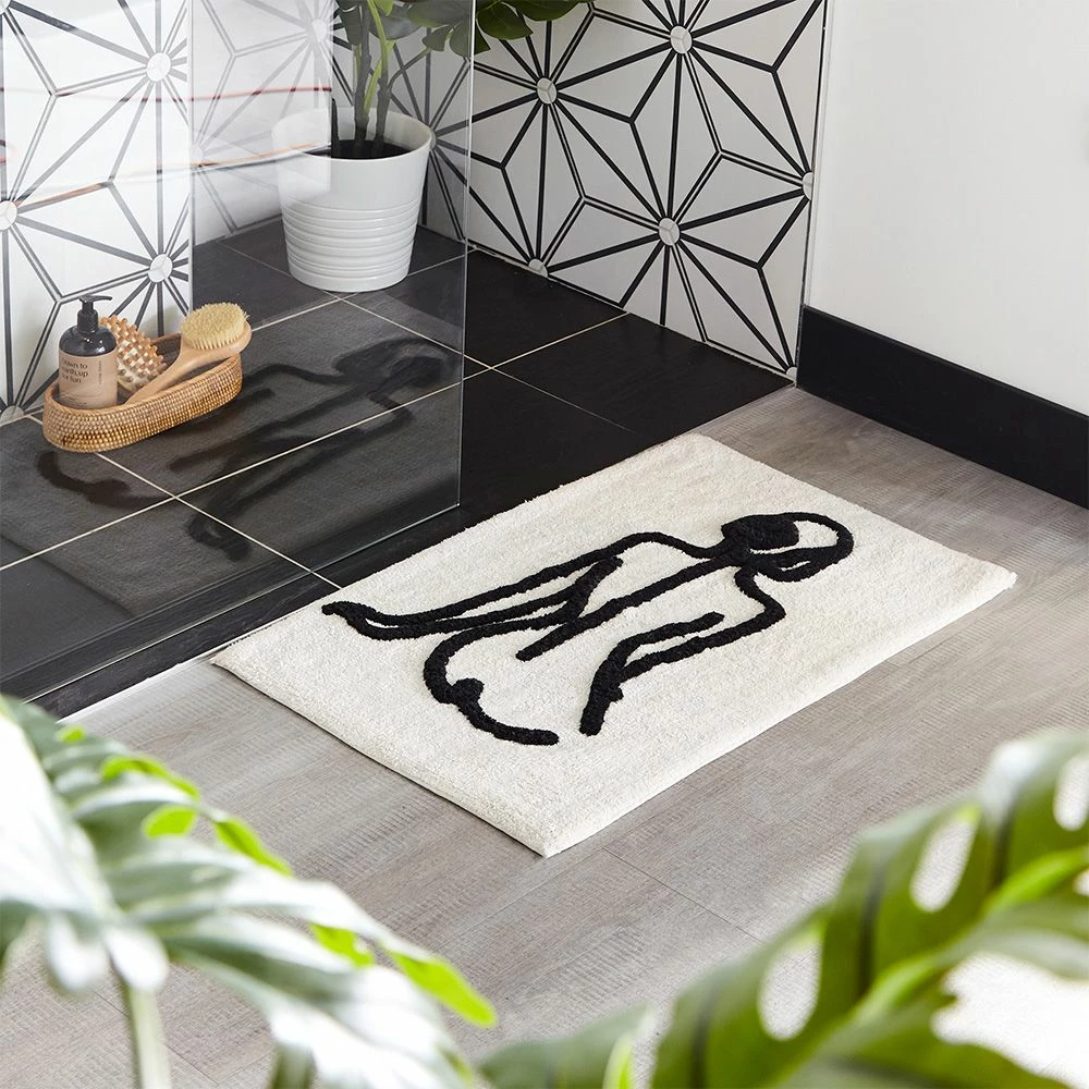 Featuring an abstract design of the female form in a stylish monochrome colour palette. Made from 100% Cotton, making this bath mat incredibly soft under foot. This bath mat has an anti-slip quality, keeping it securely in place on your bathroom floor. The 1800 GSM ensures this bath mat is super absorbent preventing post-bath or shower puddles.
