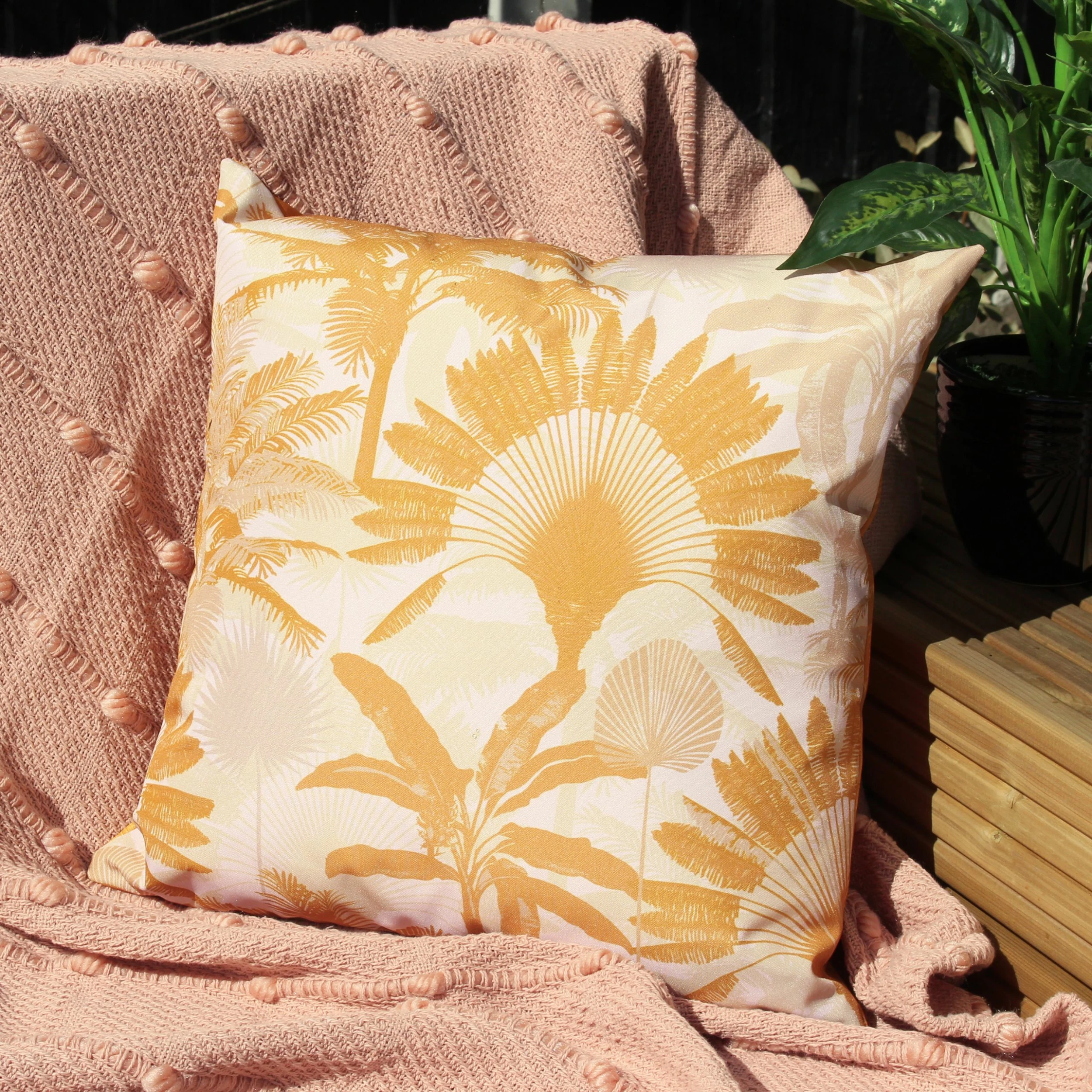 Luxurious and eye-catching, the Palms outdoor cushion features a silhouette palm print on a durable, water resistant polyester. Style in your garden for instant transformation.