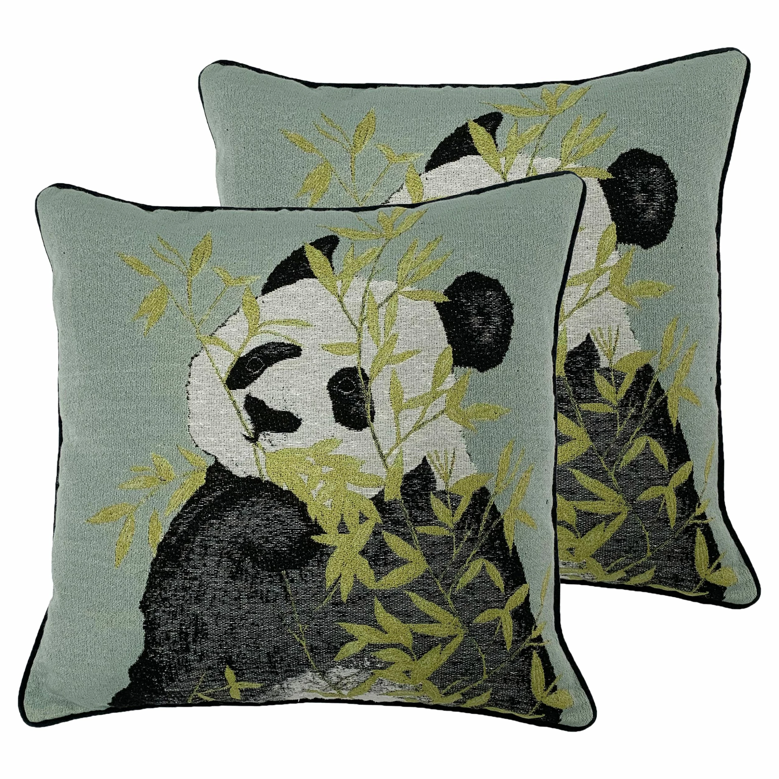 A treasured animal, the Panda is known for it’s charisma and endearing nature. This beautiful jacquard cushion is a tranquil shade of green, the perfect backdrop for our charming Panda and sprays of eucalyptus leaves. Finished with plush velvet reverse and piping, for a luxe feel.