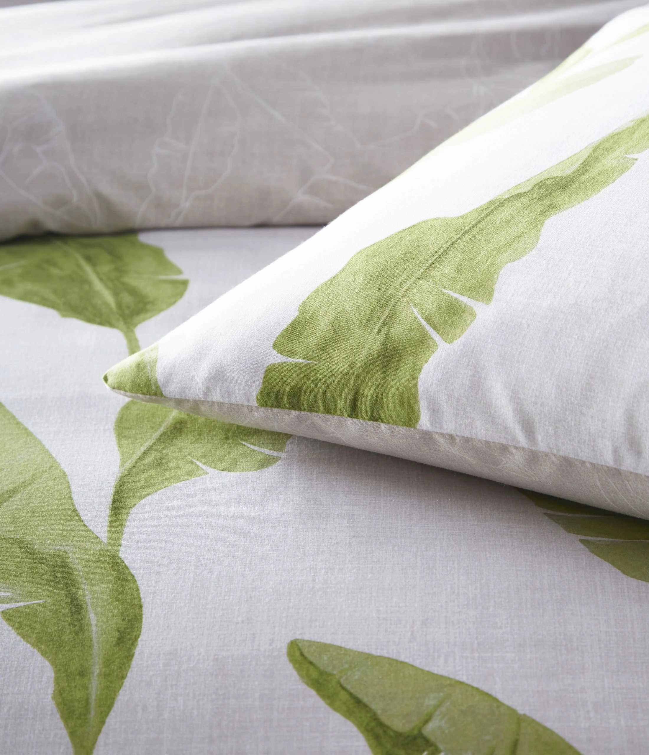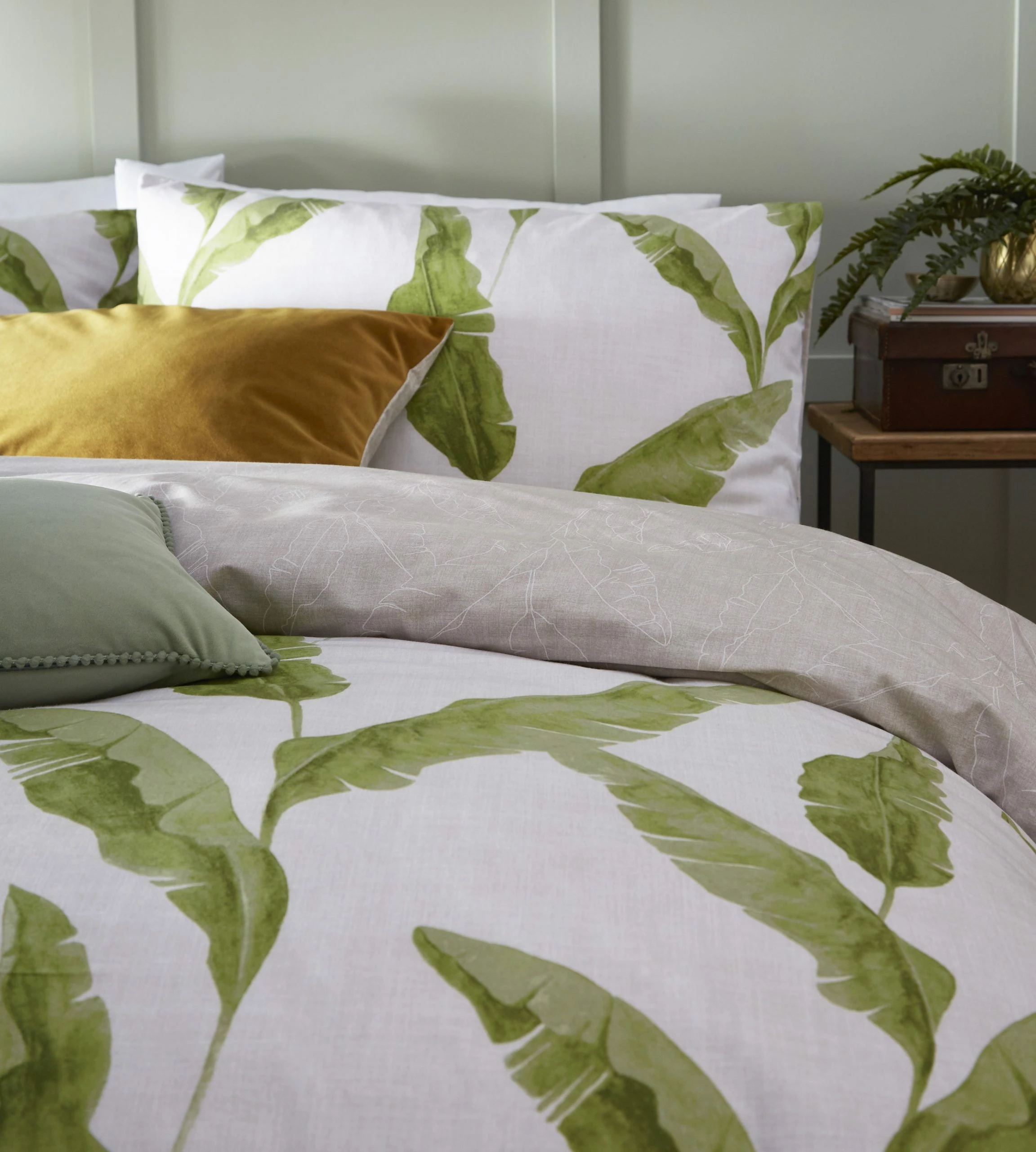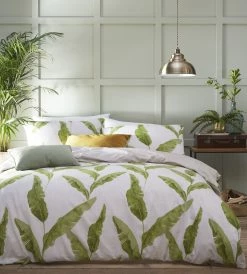 A print design with great impact; majestic banana leaf fronds sway gracefully against a soft canvas textured print. A linear print adds a graphic look to the reverse.