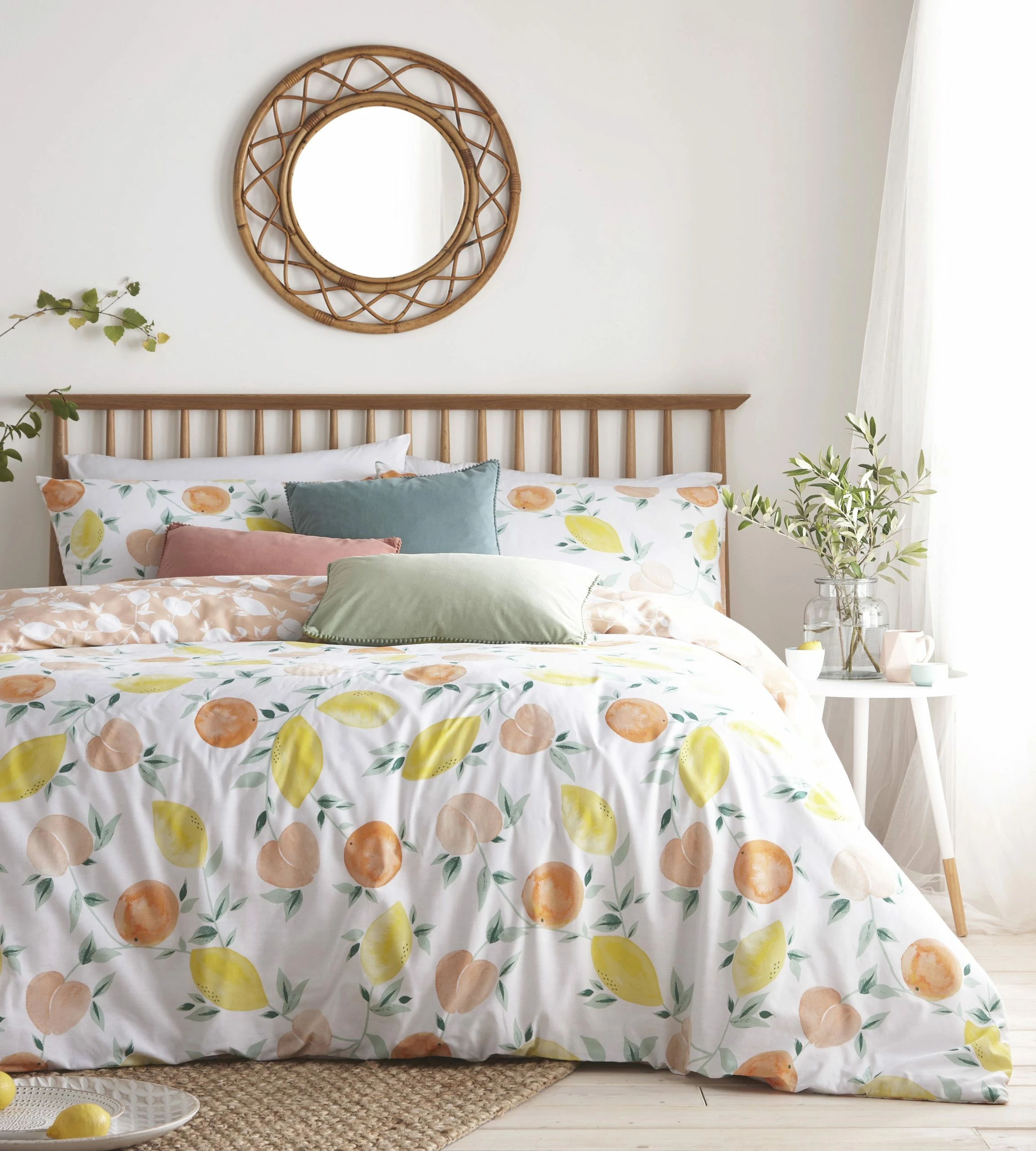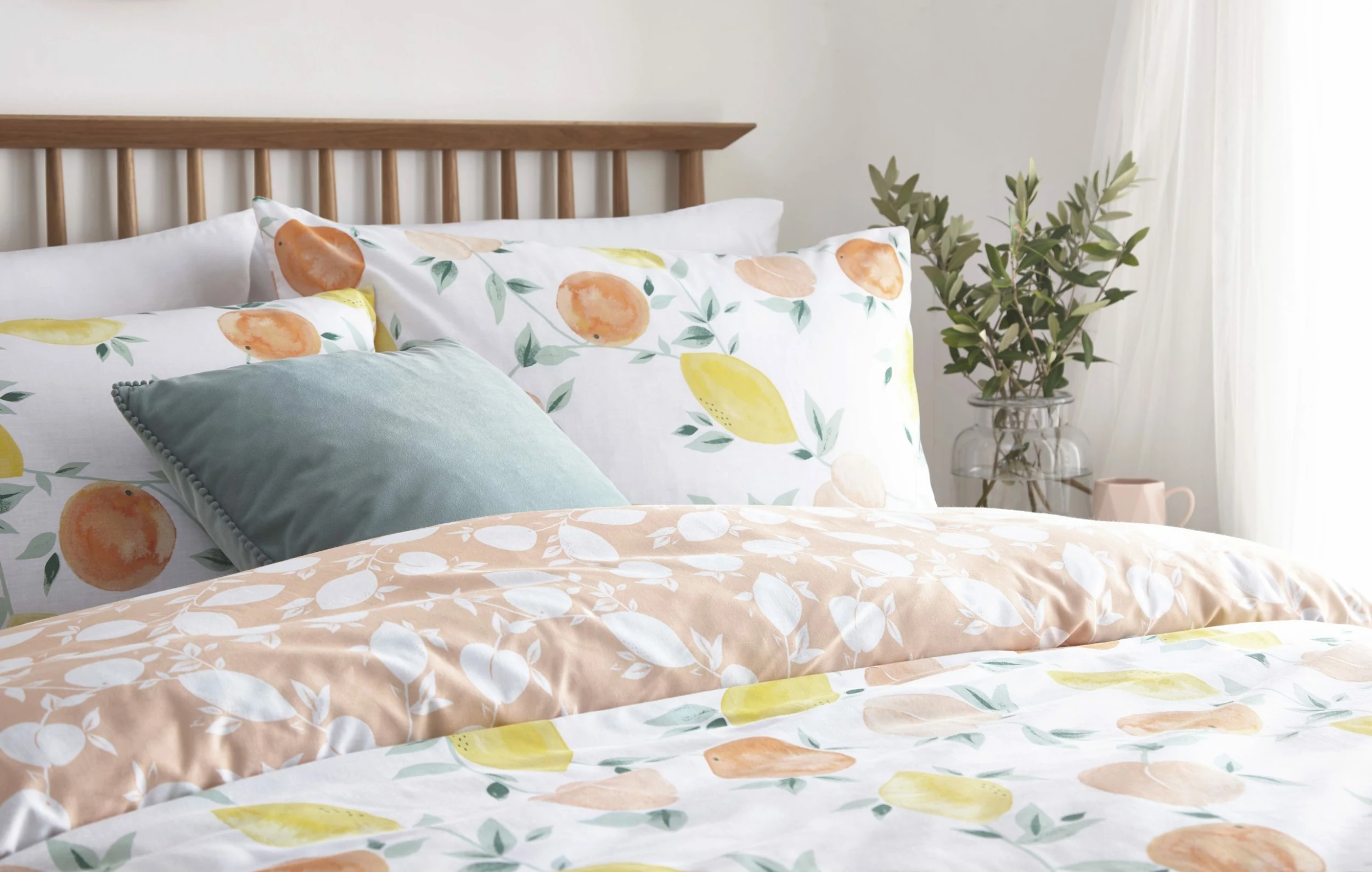 Step into spring with this light and fresh design with soft and citrus fruits, giving instant transformation to any space.