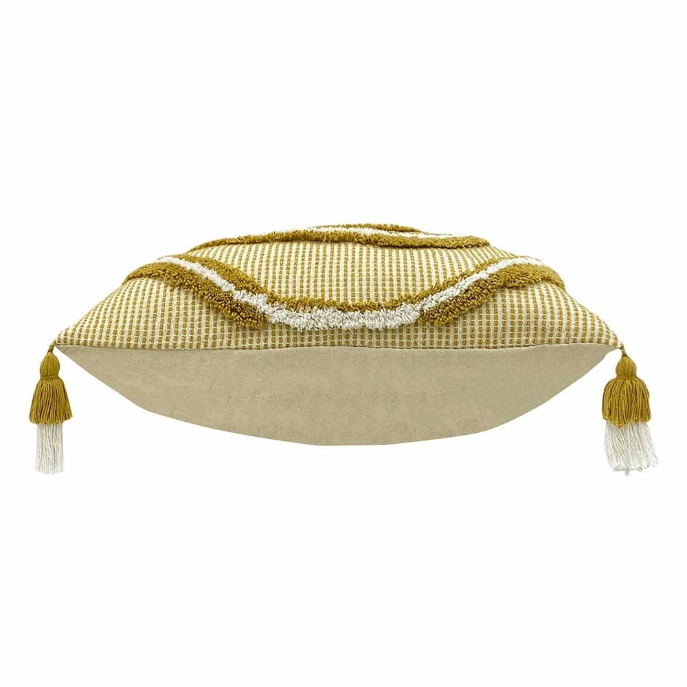 Featuring a cotton woven base with two tone tufting and a double tassel edge. Available in a variety of colour ways. Complete with standard knife edging and hidden zip closure. Made of 100% Cotton, making this cushion super comfy and durable.