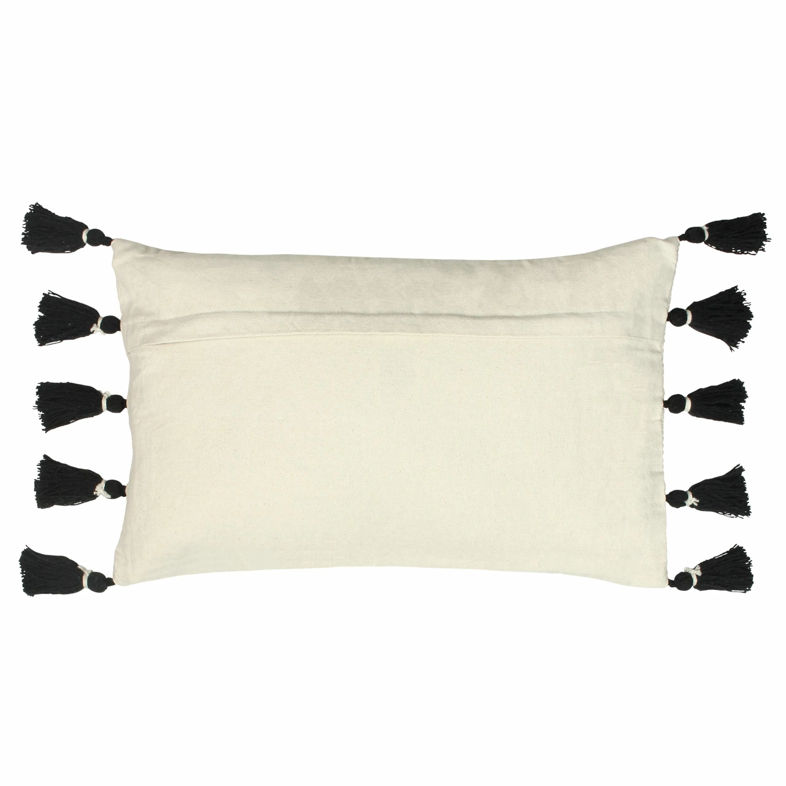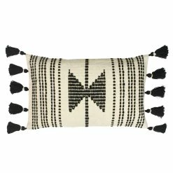 Make a statement in your home with the Sagar cushion. Featuring a bold stitched geometric design on a cotton canvas fabric. Complete with black side tassels, this cushion will sit perfectly in any contemporary interior.