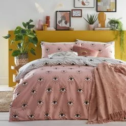 Add instant personality into your bedroom with this bold duvet set, featuring mystical watching eyes design. This has a neutral reversible design so you can switch the look when you need to.