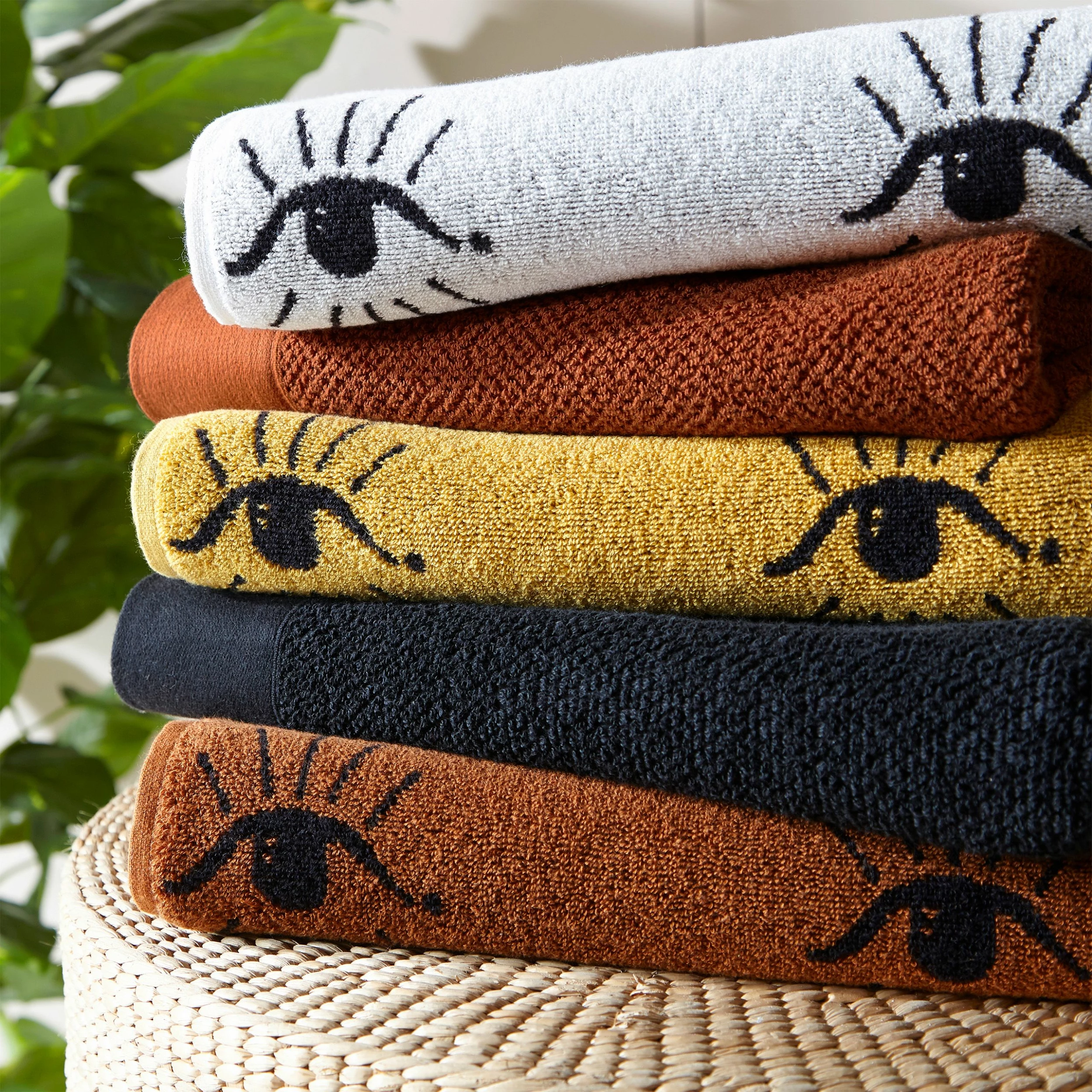 Add instant personality into your bathroom with this bold repetitive design featuring mystical watching eyes. Made out of 100% Turkish cotton, this hand towel is wonderfully soft and also quick drying, making it the perfect addition to your home. This product is certified by OEKO-TEX® showing it has been sustainably made.