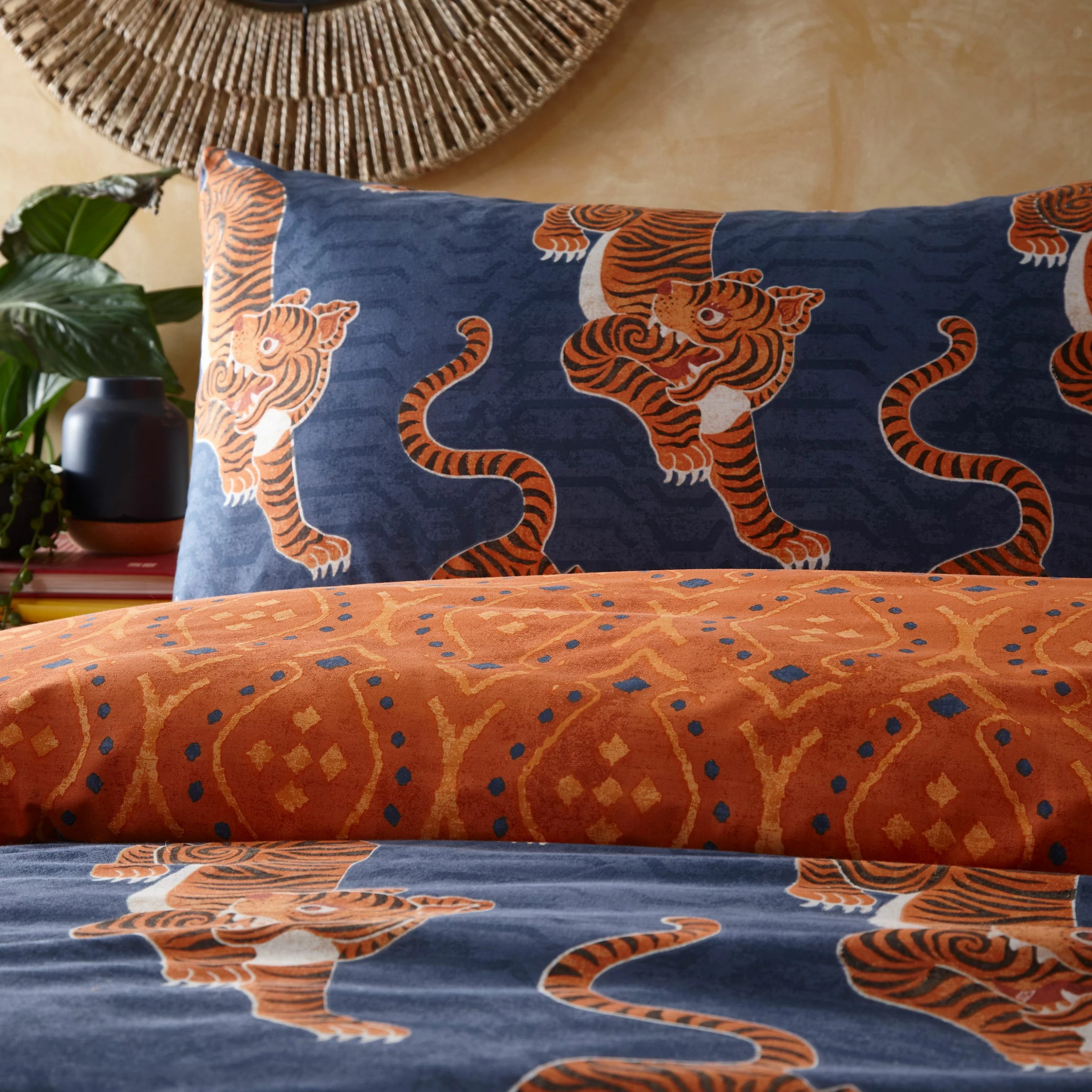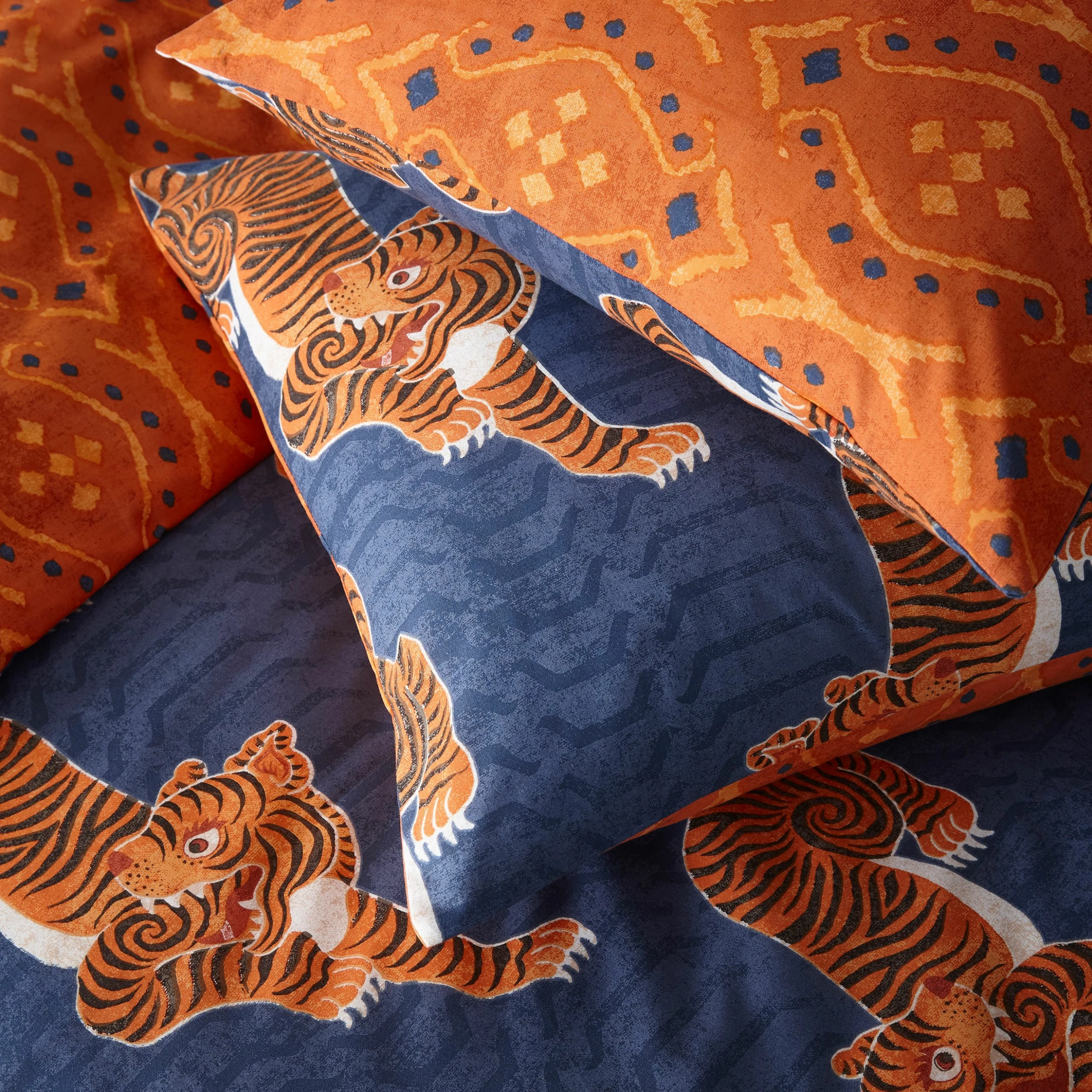Add instant personality into your bedroom with this show stopping Tibetan Tiger bedding, featuring tribal-inspired prints and crawling tigers. Fully reversible design, so you can switch the look when you need to. Single size includes one matching pillowcase measuring 50 x 75cm (20″ x 30″), Double/King Size includes two matching pillowcases measuring 50 x 75cm (20″ x 30″).