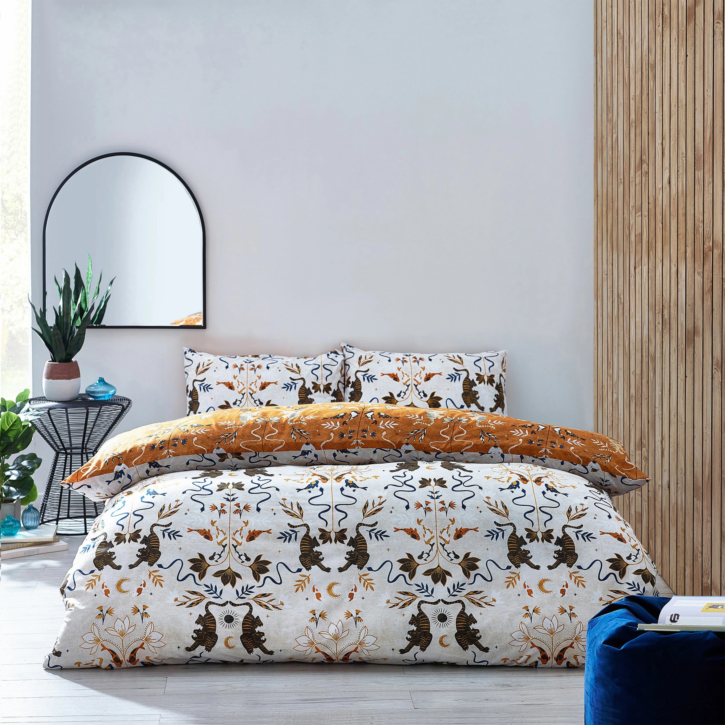 Nocturnal creatures roam in the moonlight, on land and underwater. As two worlds collide, encapsulating and celebrating the spiritual world. The reverse is a rich ochre/gold.
