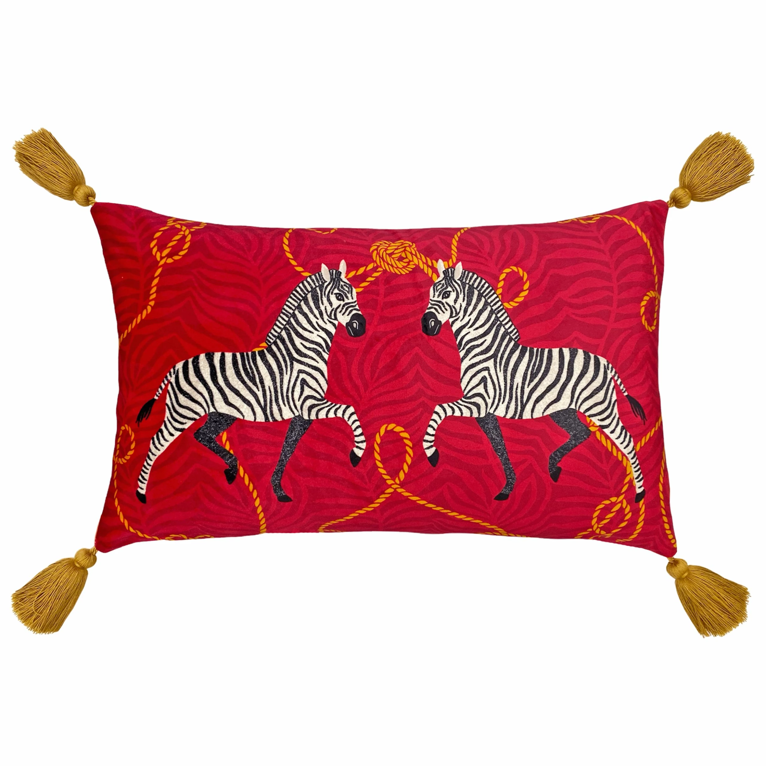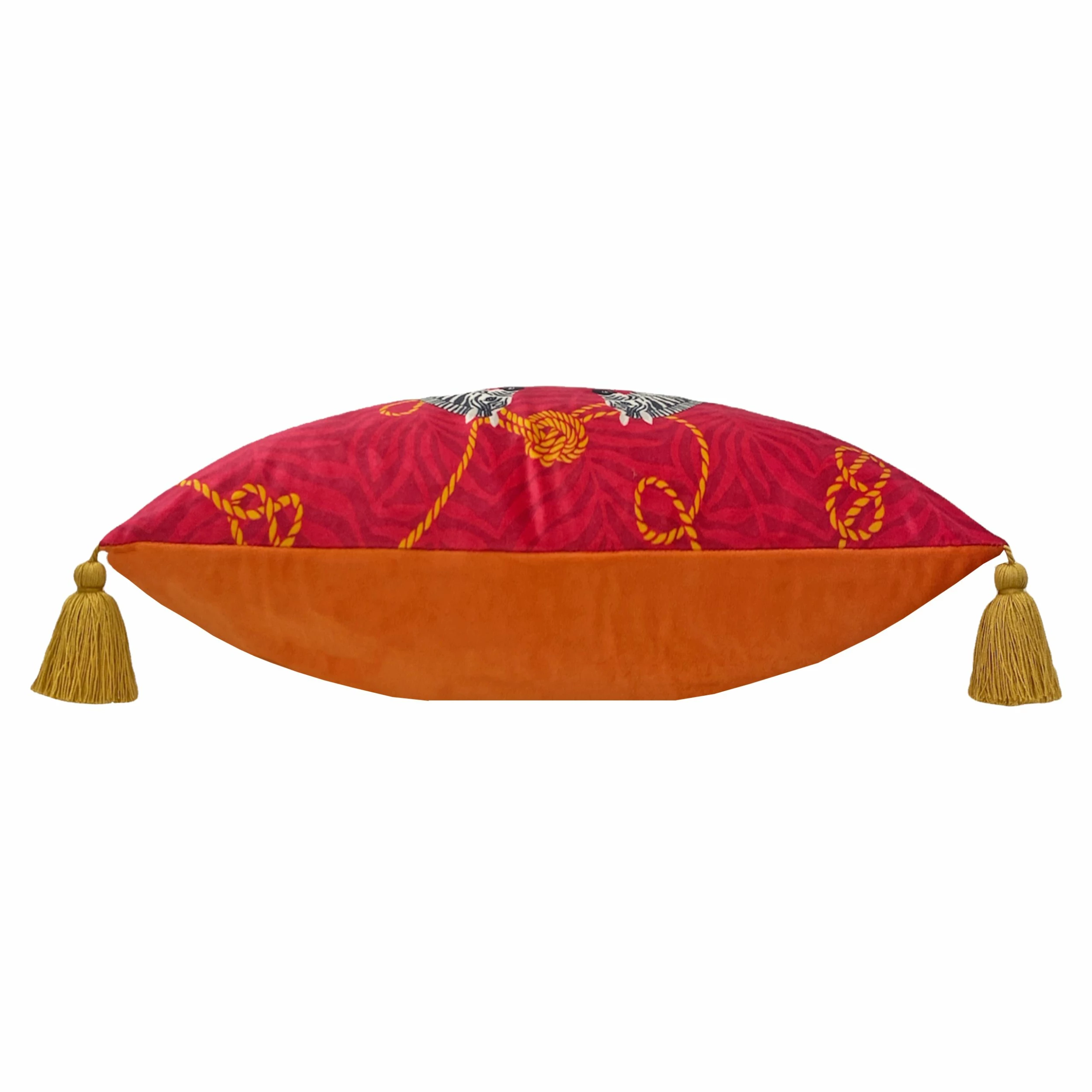 Inspired by the classic Hermes scarf, this colourful cushion is not only striking and fashionable, it is also a fantastic centre piece for any room, sure to give any scheme a new lease of life. The tones of orange and pinks, finished off with a luxe gold rope. Coordinate with the Vivid Andalucian Duvet Cover Set.