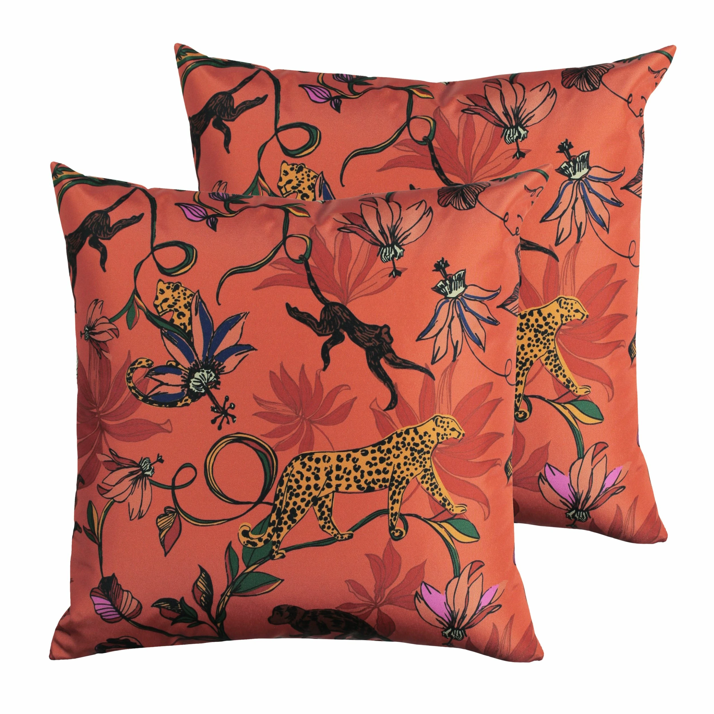 Add drama to your garden with a striking botanical themed cushion. This cushion captures a variety of tropical leaves and flowers in their bright and rich colours. With the main focal point being poised leopards and monkeys, this cushion is a beautiful addition to any outdoor space.