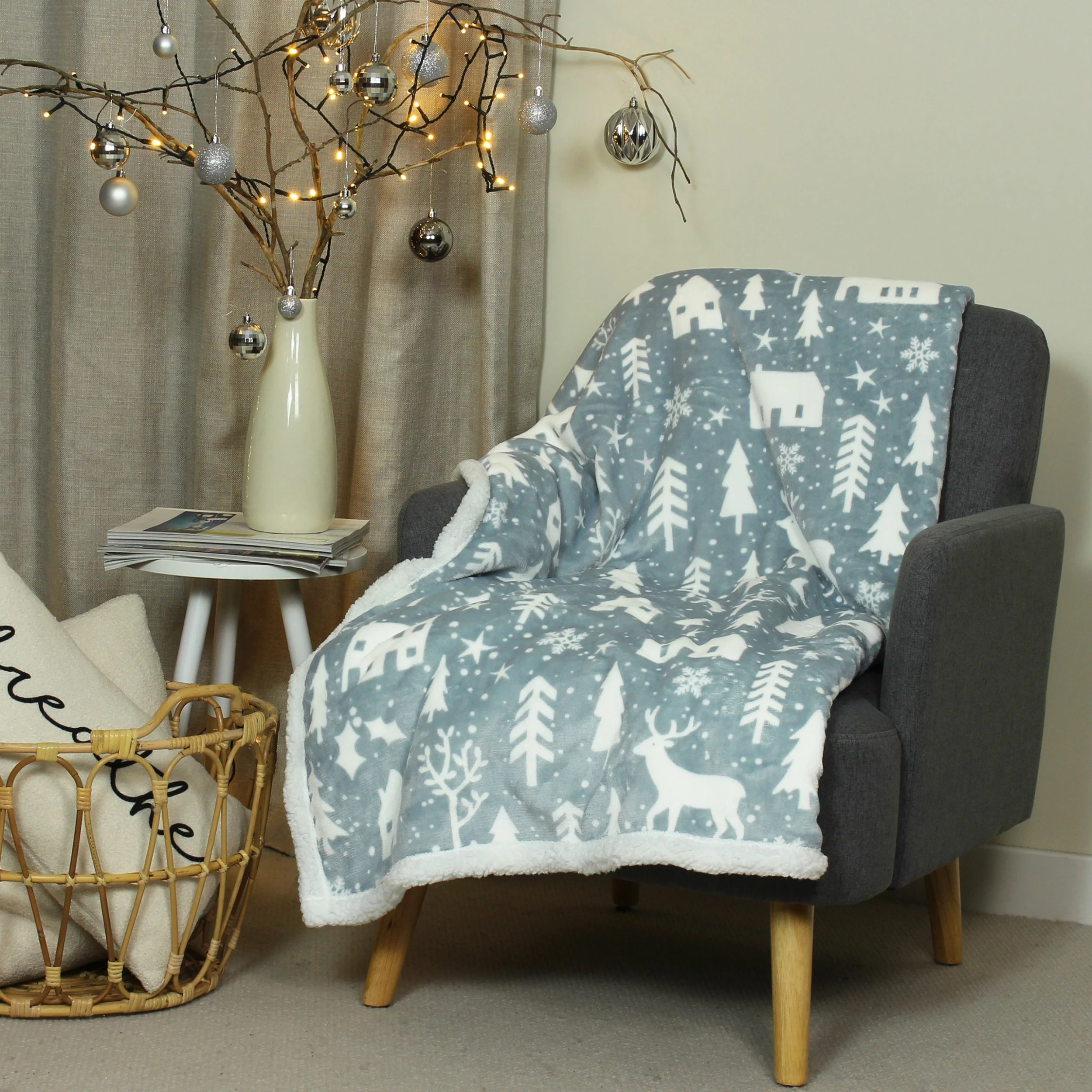 Walking in a winter wonderland! Take a walk though a winter wonderland with this fleece throw. Surround yourself with glistening snow, quaint cottages and twinkling stars. Created with luxurious 230gsm microfleece for a super soft front that emanates an opulent sheen. With a 230gsm sherpa reverse in a optic white you’ll be keeping toasty warm all night long.