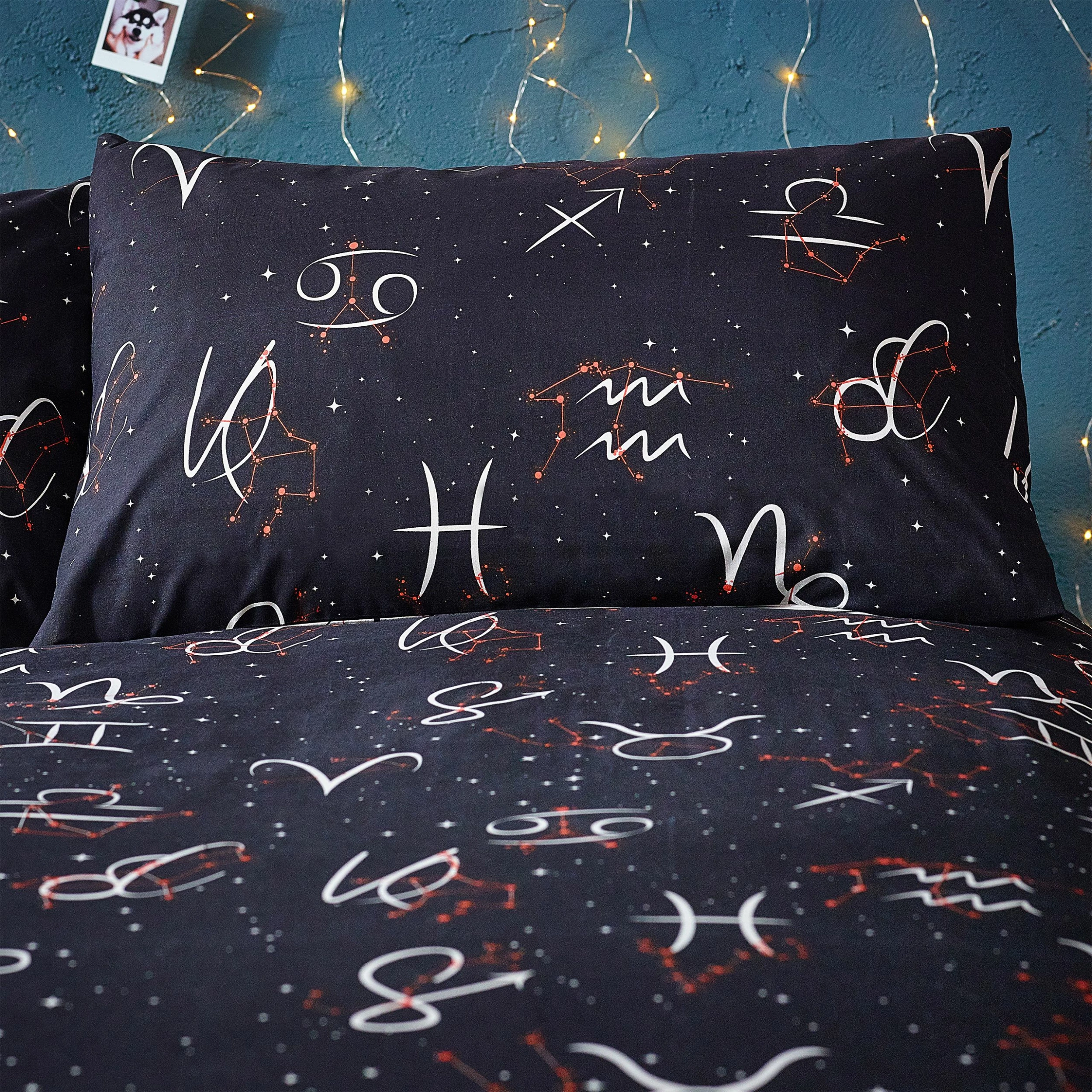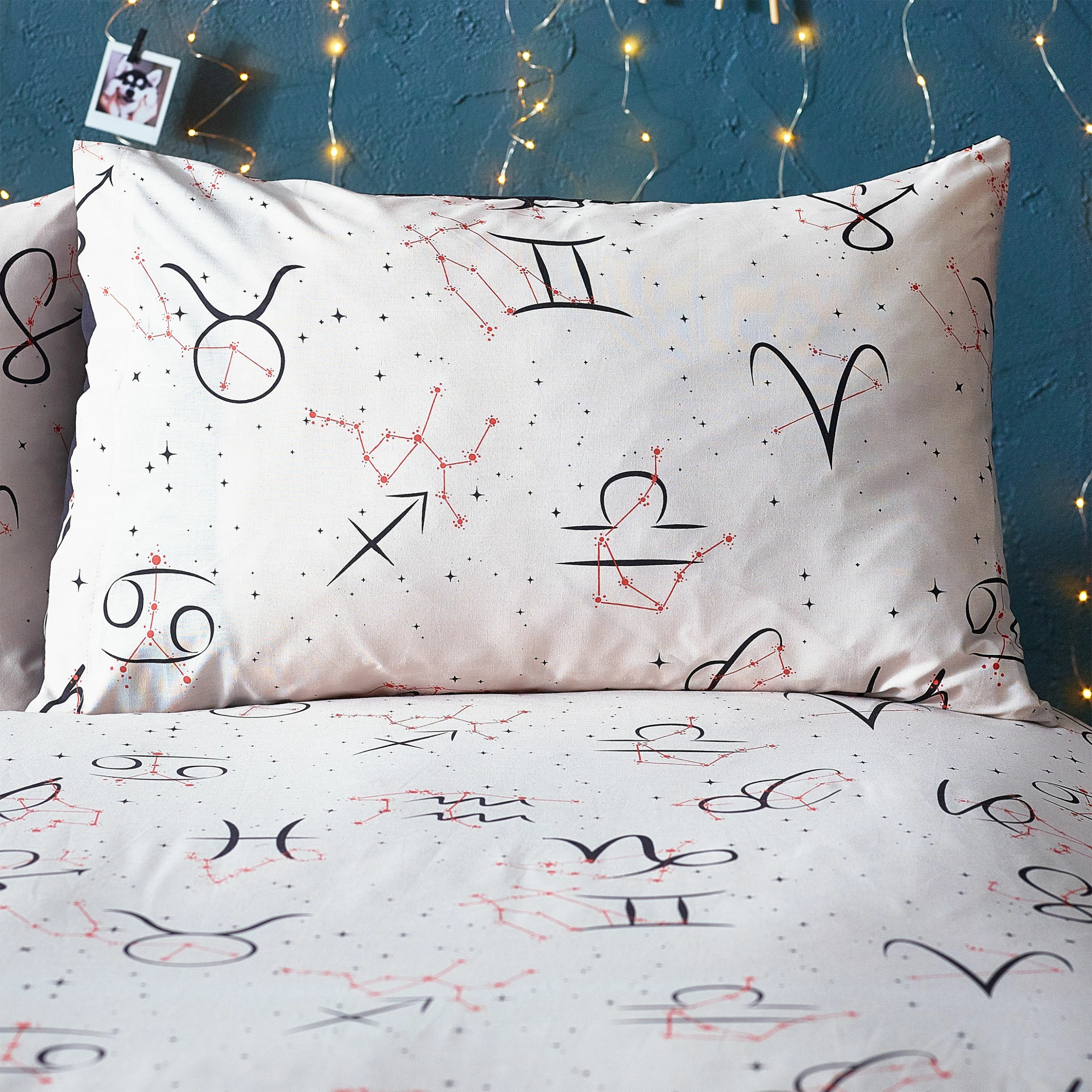 What is your zodiac sign? This zodiac inspired duvet set featuring all the zodiac signs surrounded by star constellations. The design continues to the reverse on a neutral base so you can switch the look when you need to. Have the best night’s sleep with this celestial-themed duvet set.